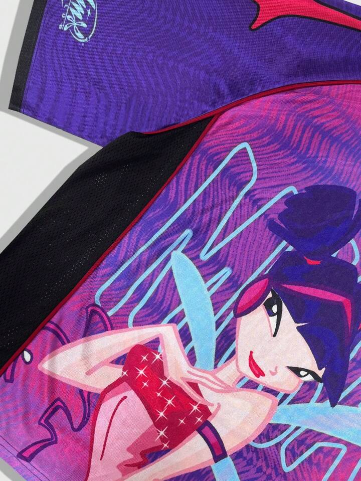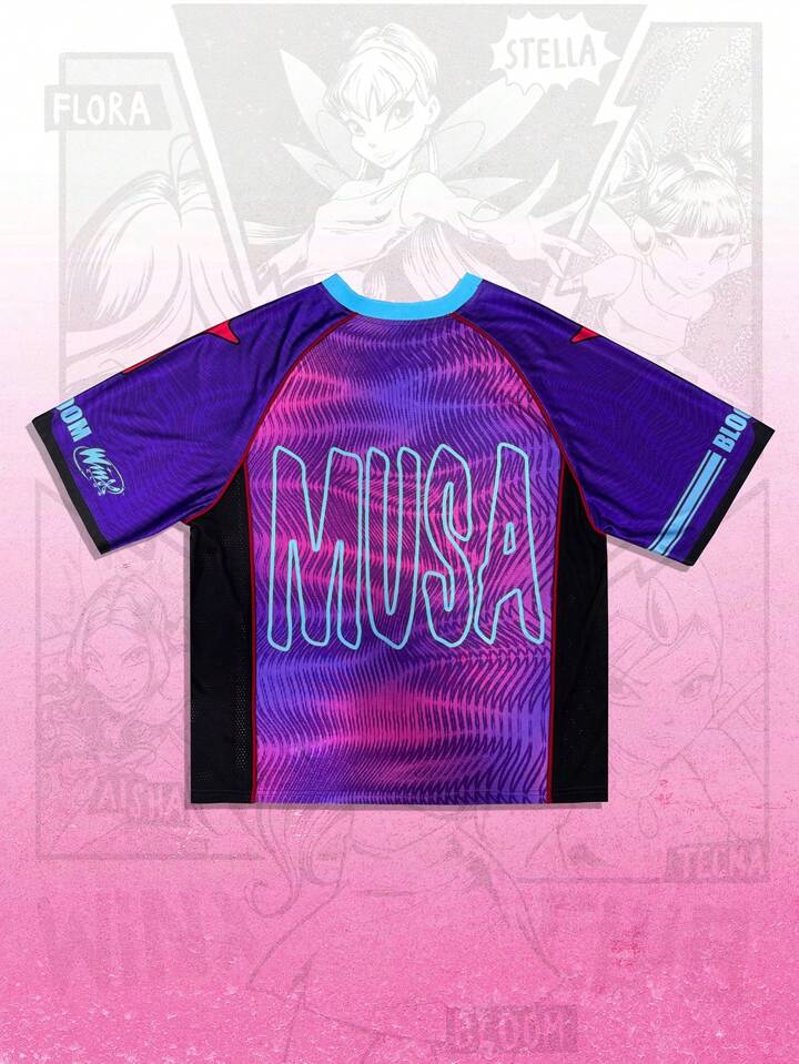 Winx Club X ROMWE Maillot de sport à manches courtes à col en V, deux tons avec personnage de dessin animé pour hommes