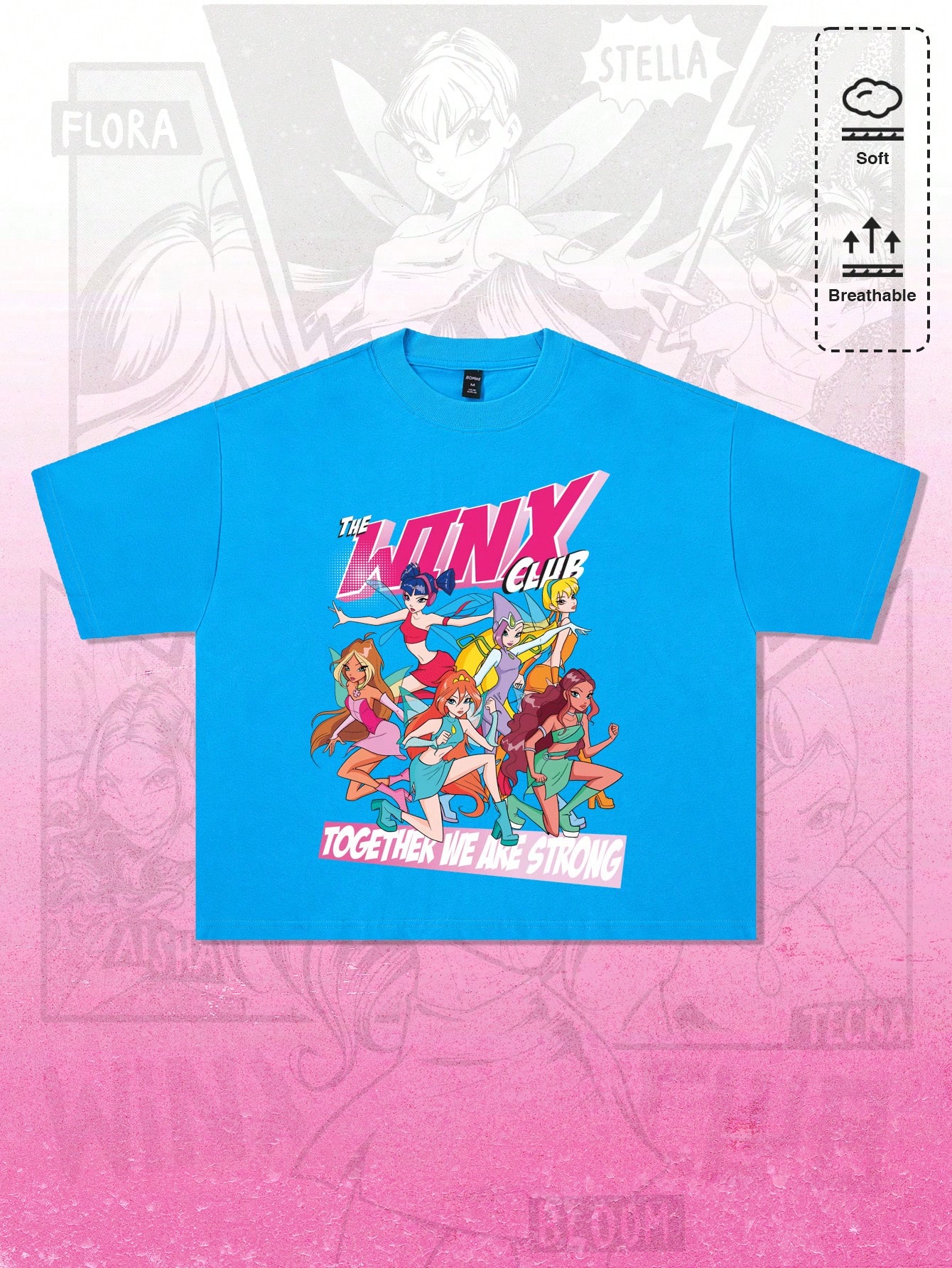 Winx Club X ROMWE T-shirt court détente avec impression de portrait de bande dessinée pour hommes