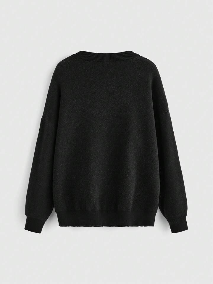Winx Club X ROMWE Pull-shirt noir ample à imprimé de personnage de dessin animé et de lettres avec épaules tombantes pour femmes