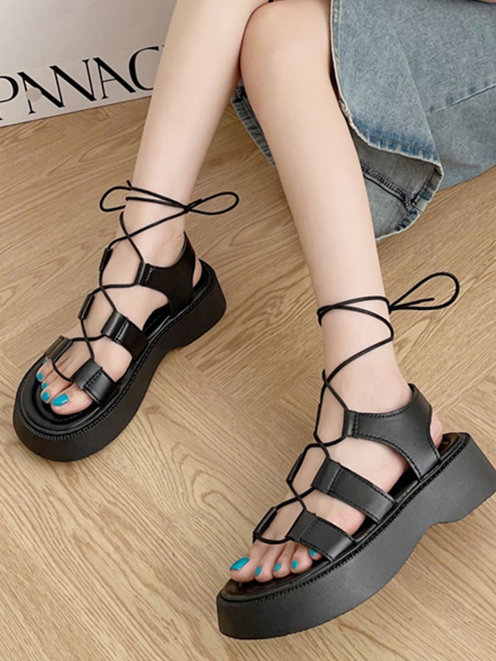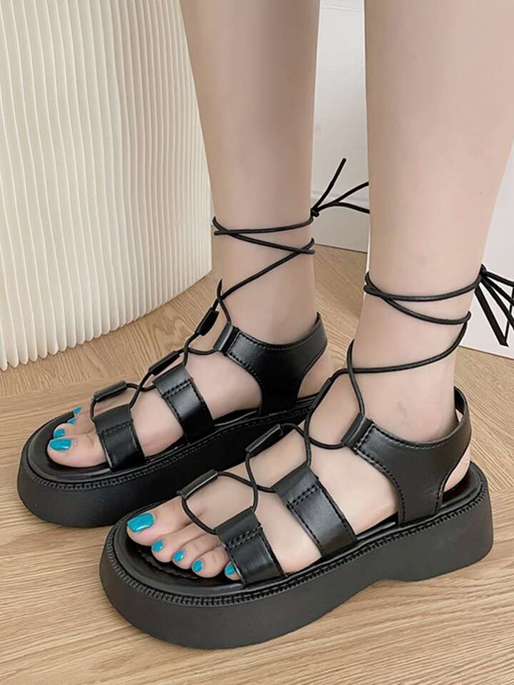 Sandales plates à design nœud à lanières extérieur