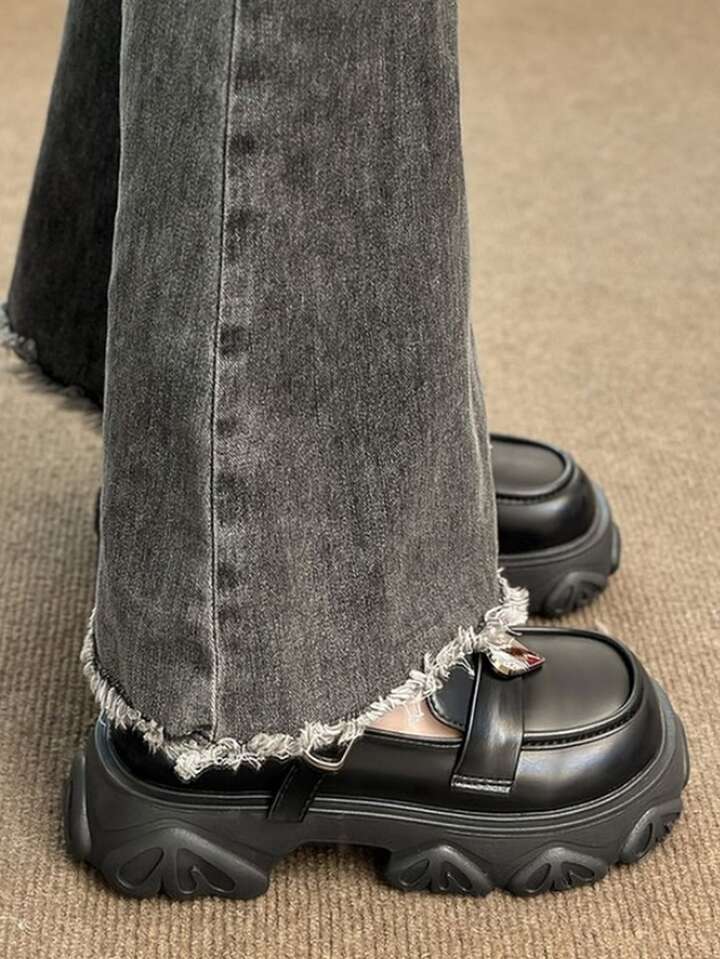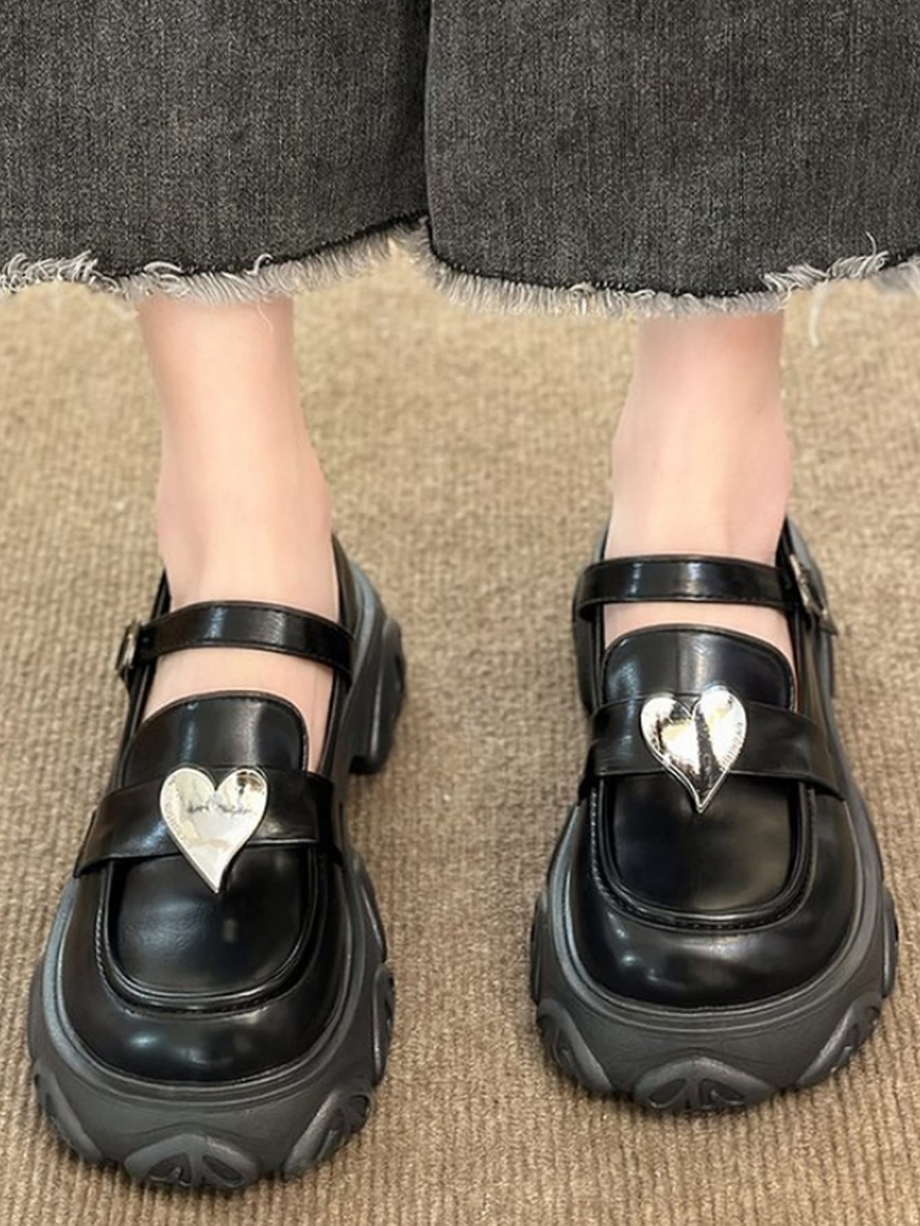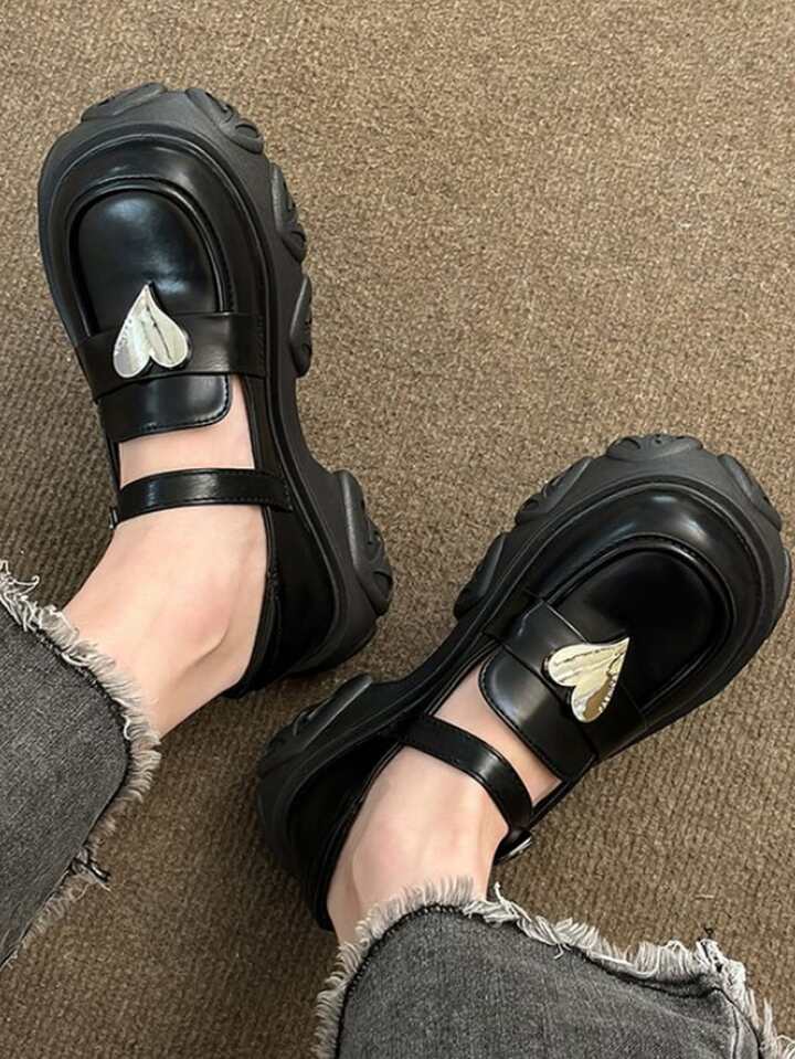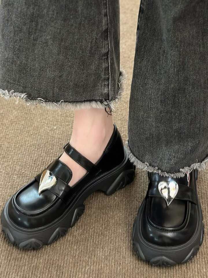 Femme À Détail Cœur Babies Preppy Plate-Forme Chaussures Noir