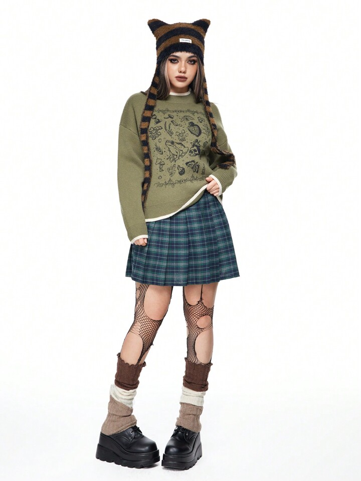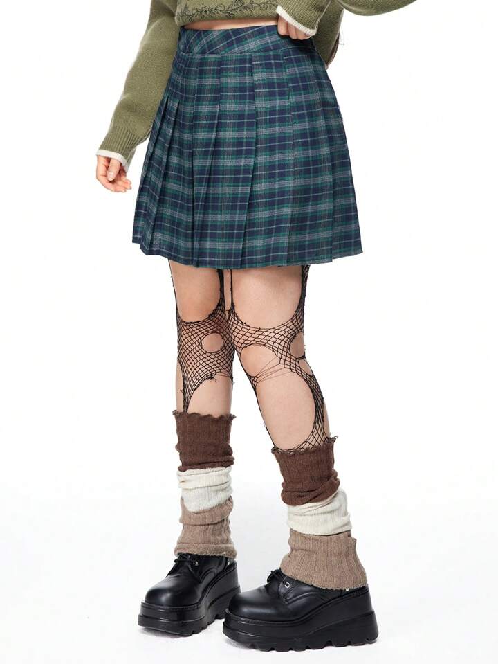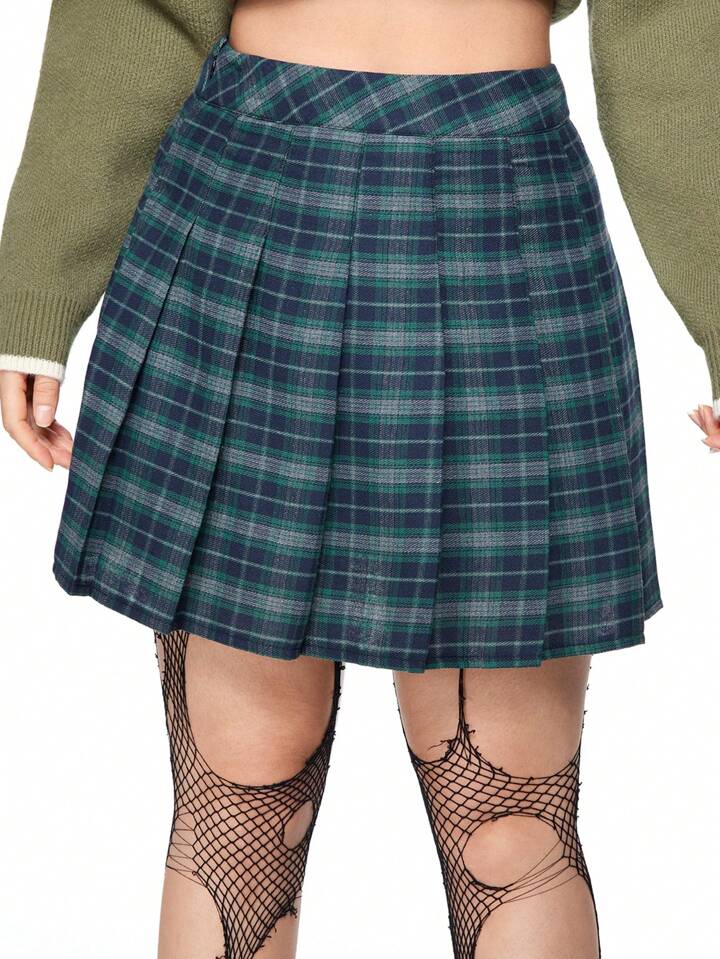 Jupe plissée style école à taille haute à carreaux, décontractée