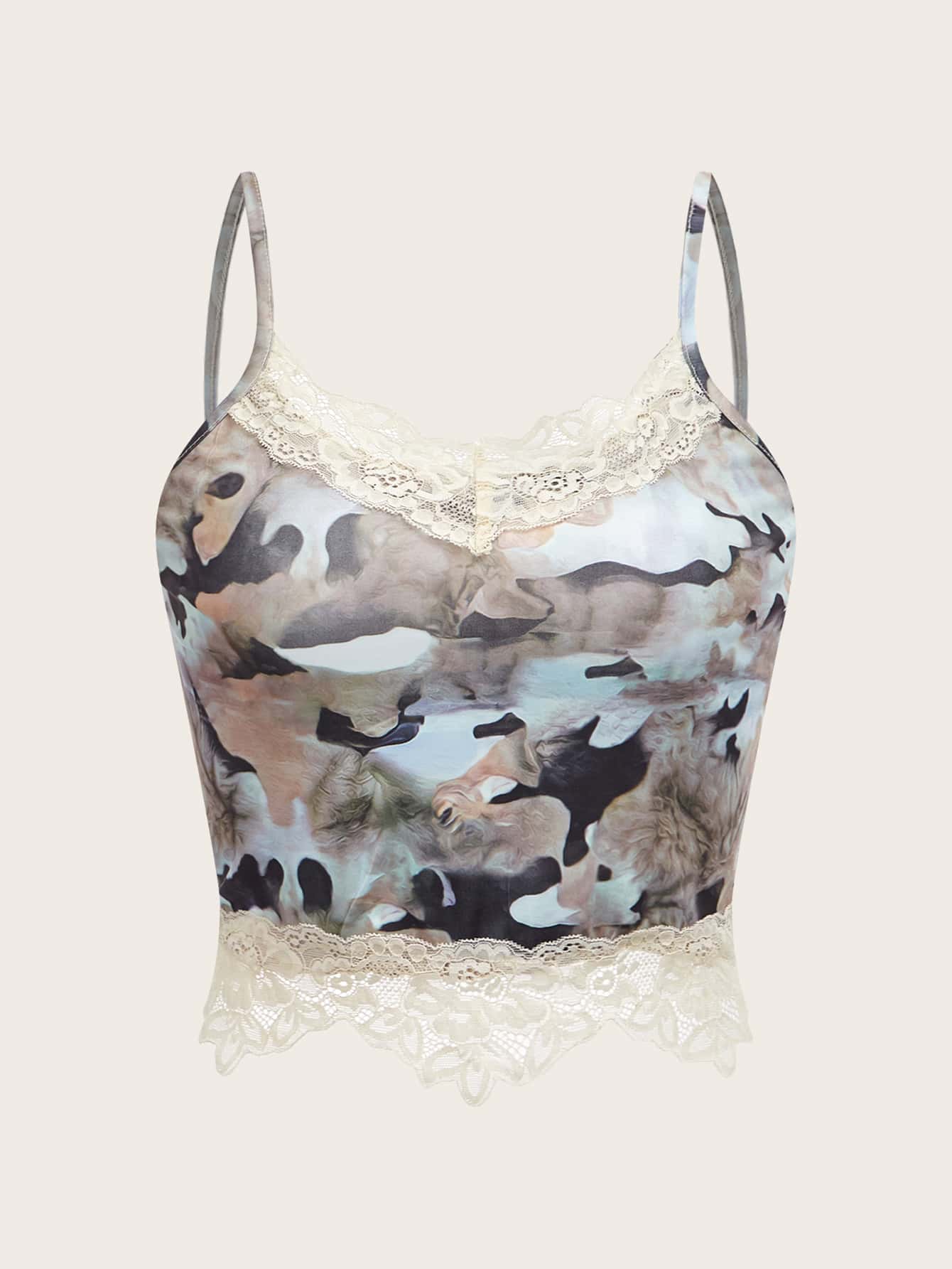 Débardeur en camouflage avec empiècement en dentelle pour femmes