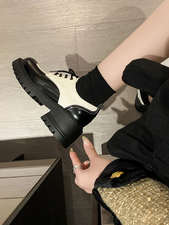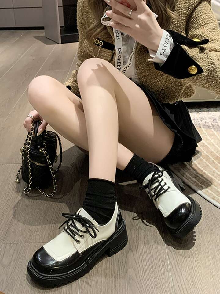 Femme À Lacets Bicolore Plate-Forme Chaussures , Preppy Extérieur Plate-Forme Chaussures Oxford