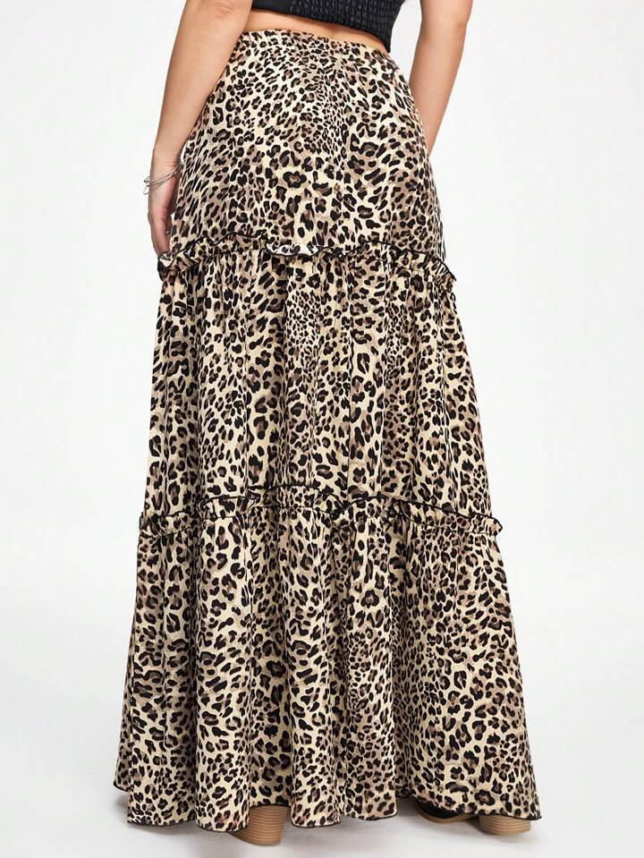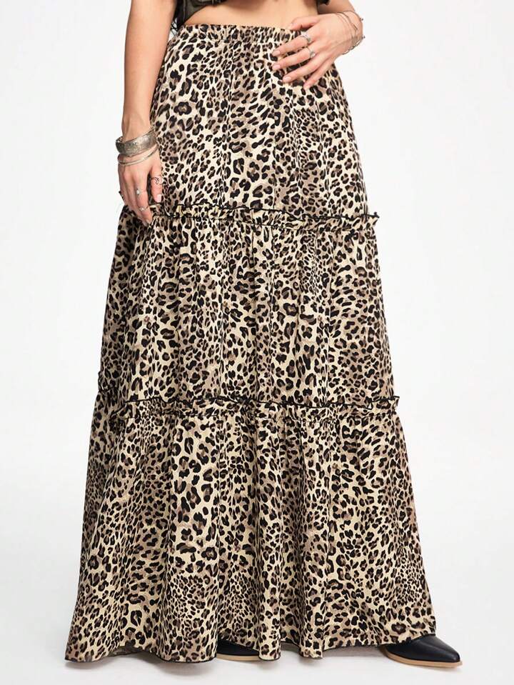 Jupe à ligne A imprimée léopard pour femme avec grand balancement, mode printemps/été