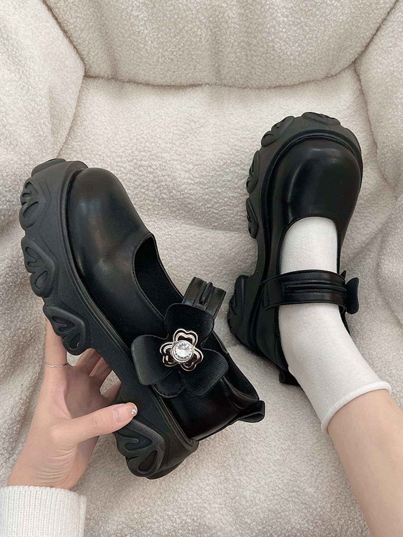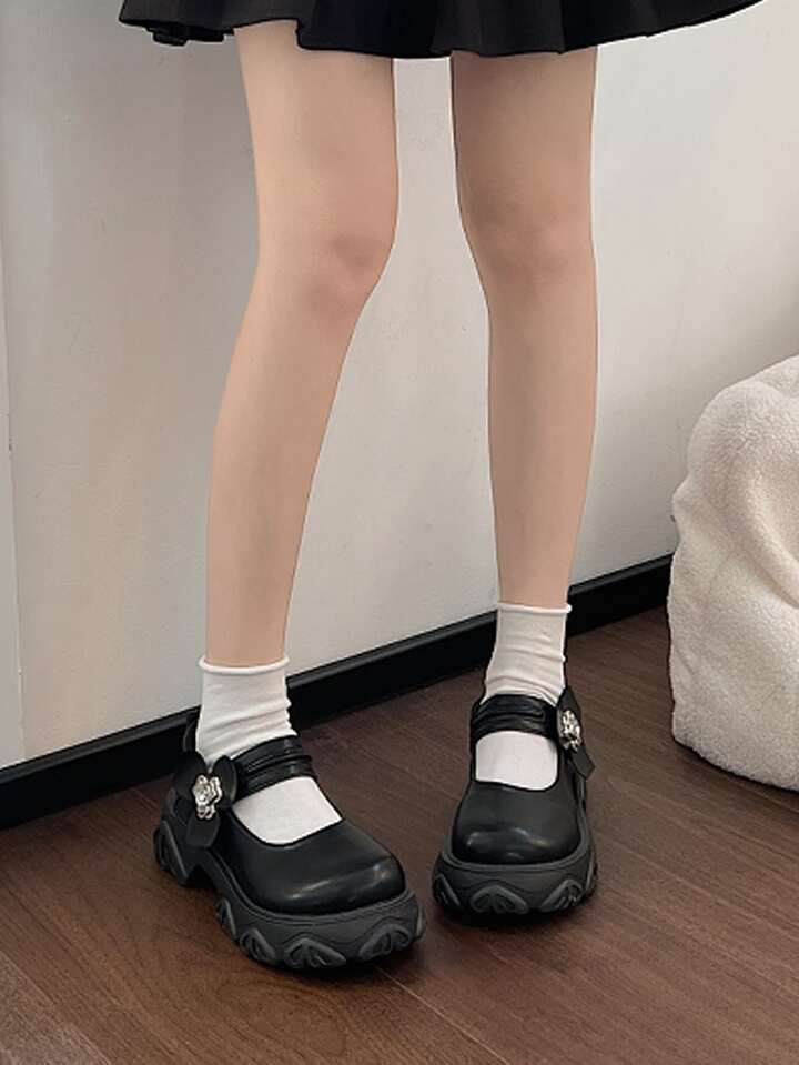 Femme À Strass & À Fleur À Plate-Forme Chaussures , Preppy Noir À Plate-Forme Babies