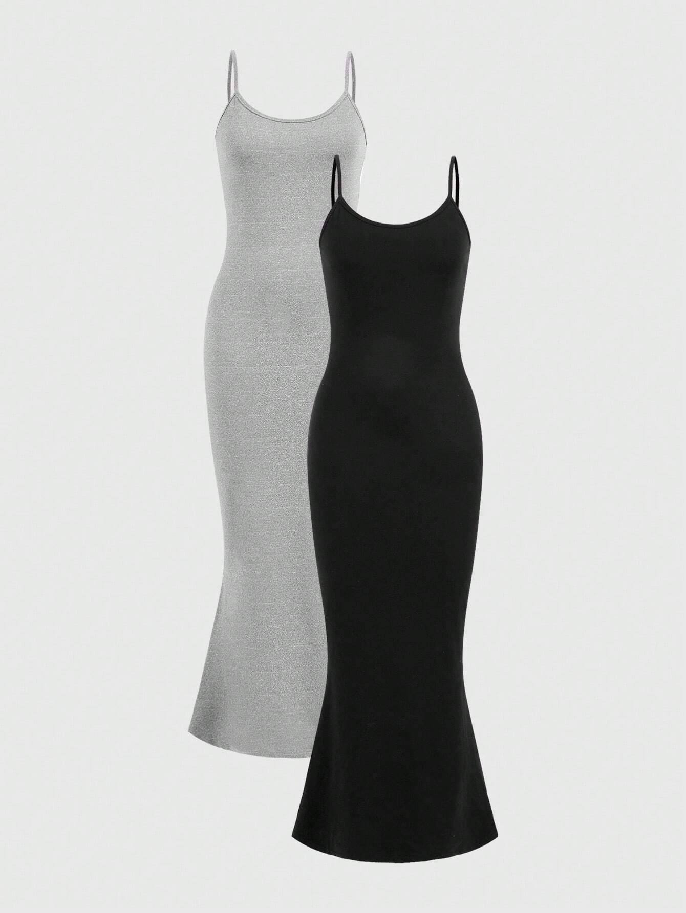 Ensembles De 2 Pièces De Robe Moulante Unie Sexy Pour Femmes Avec Bretelles Réglables Et Ceinture De Taille, Tenue Polyvalente
