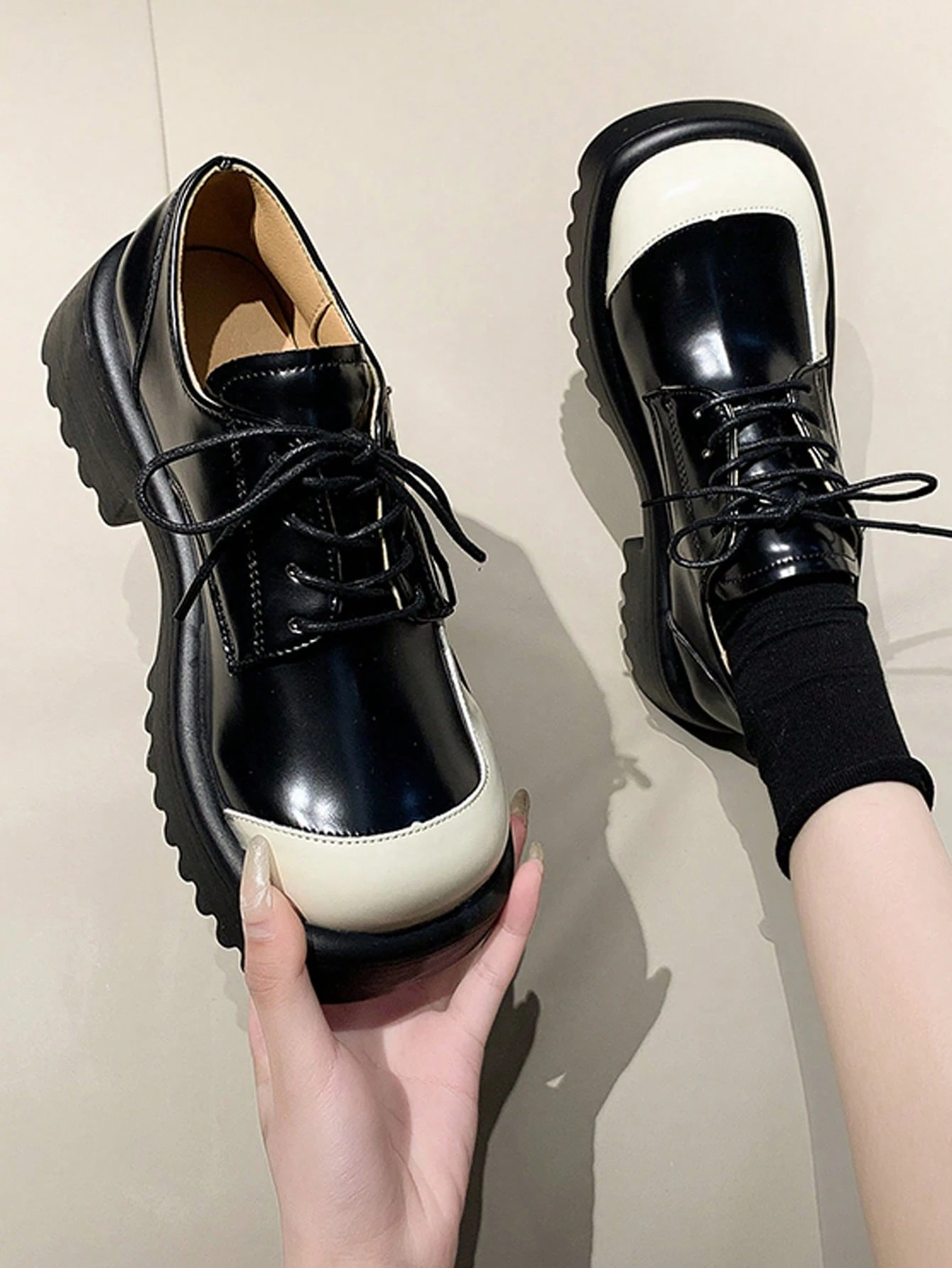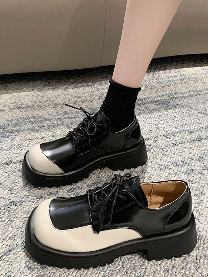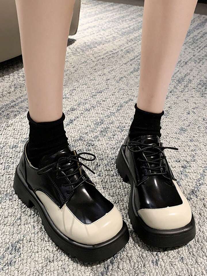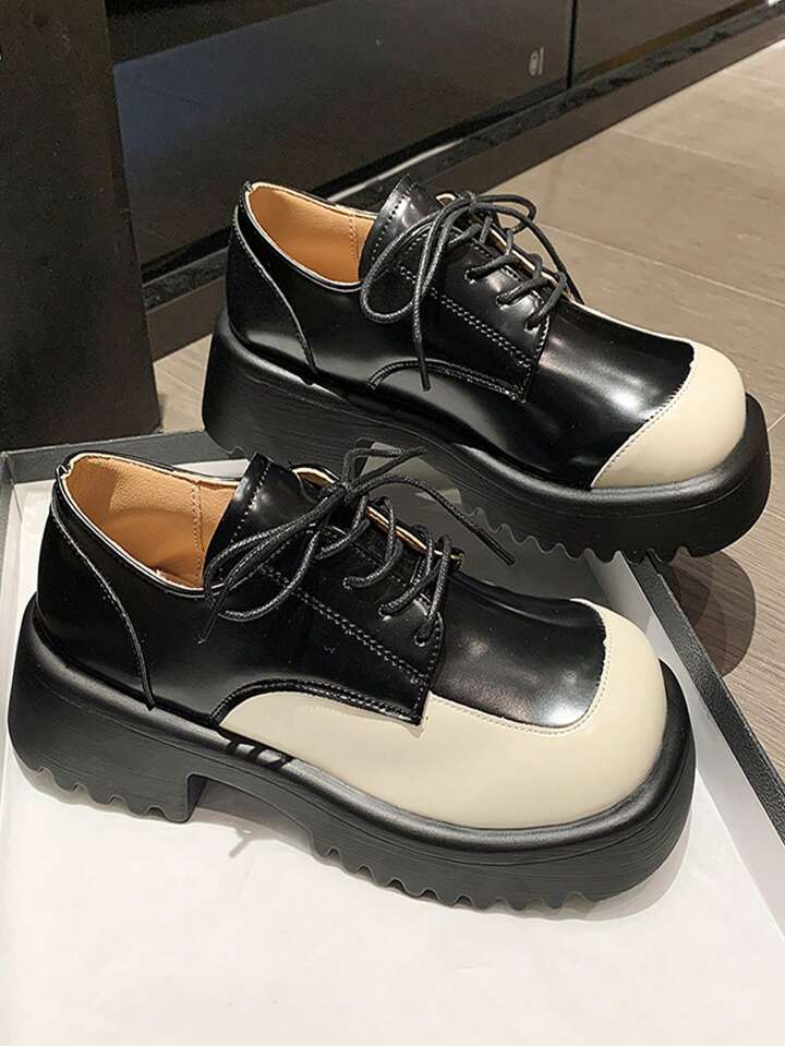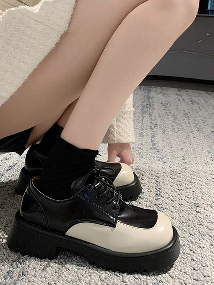 Femme Bicolore À Lacets Plate-Forme Chaussures , Preppy Extérieur Chaussures Oxford