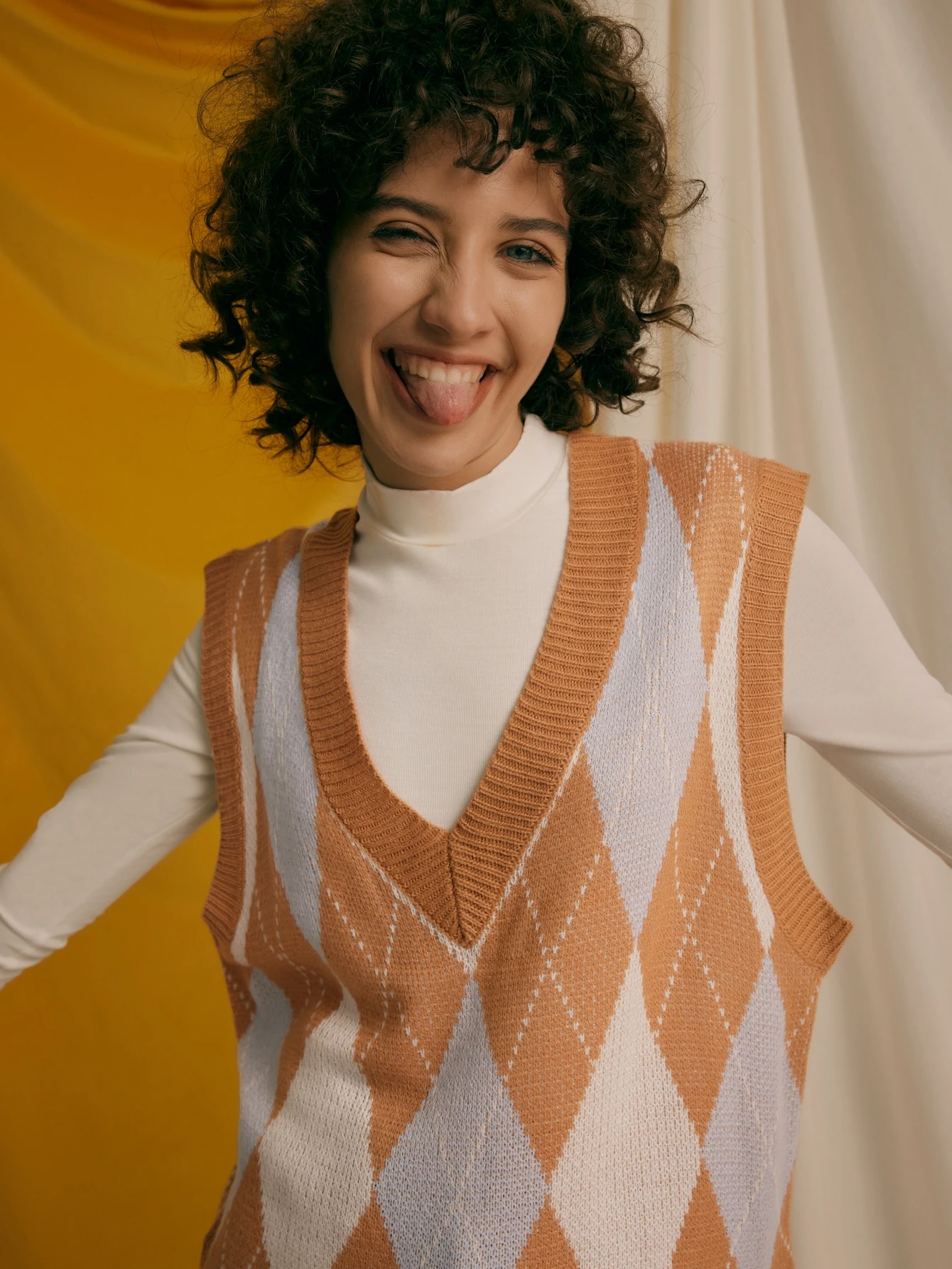 Débardeur casual en maille à col en V avec motif diamant pour femmes