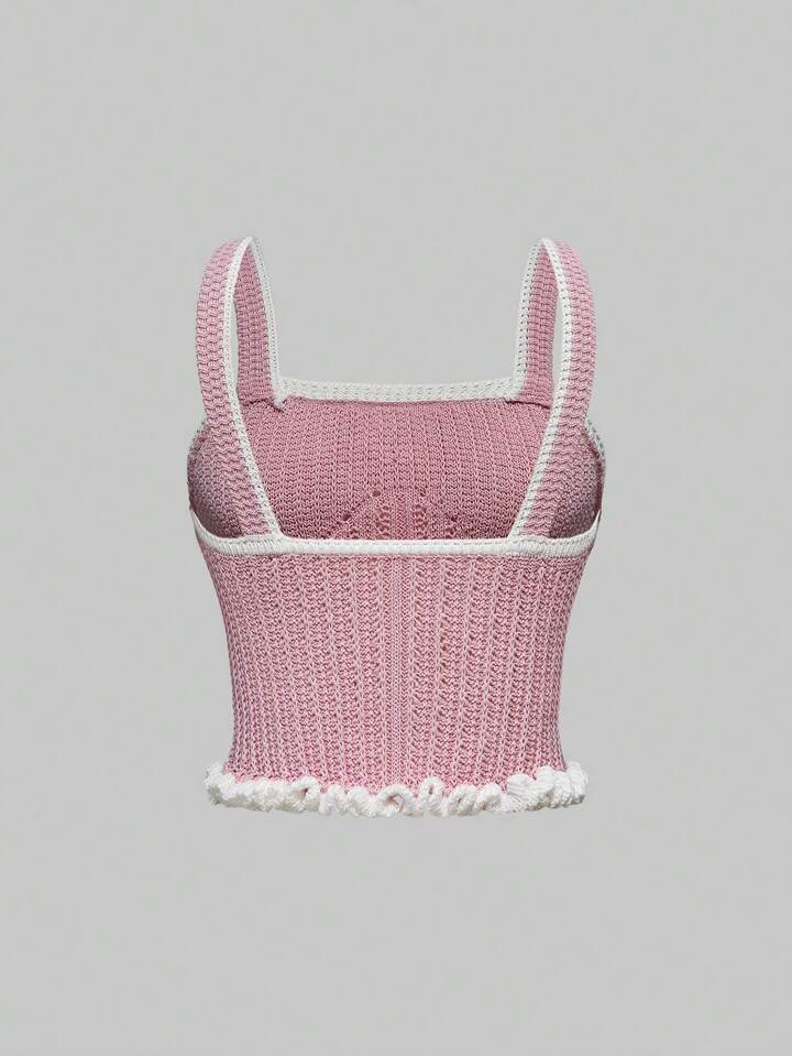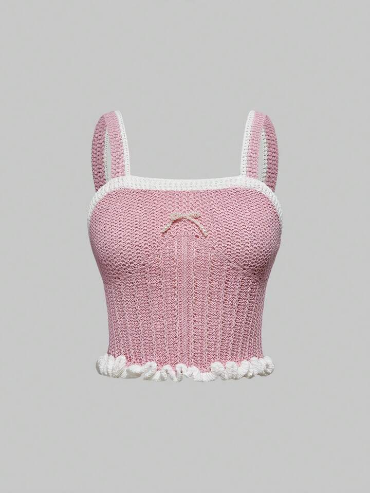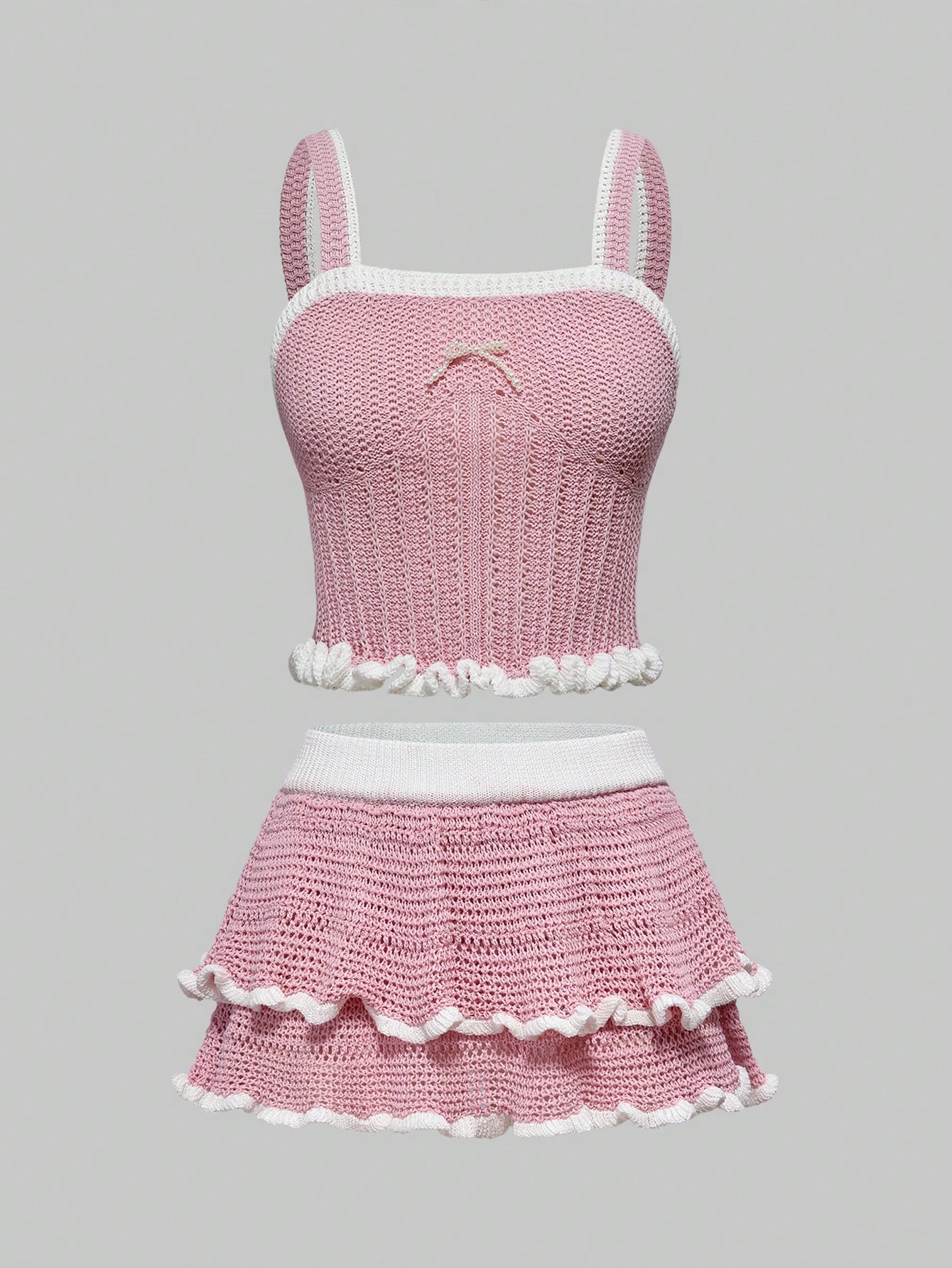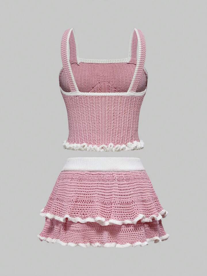 Ensemble débardeur tricoté et jupe avec bordure contrastante pour femmes