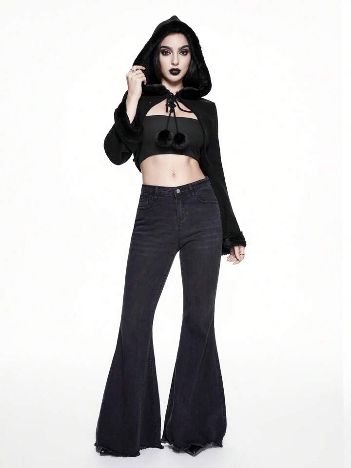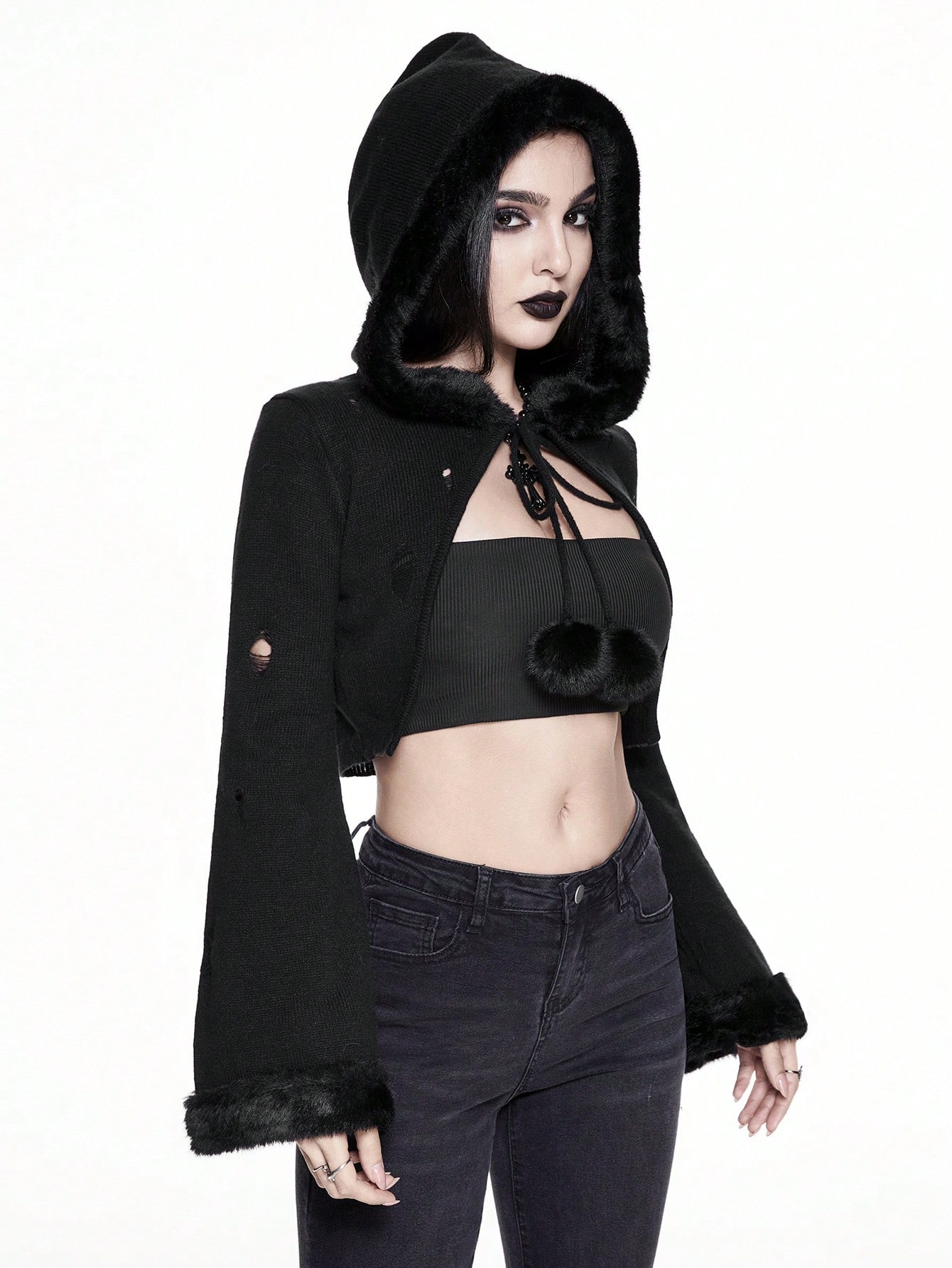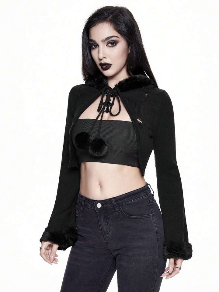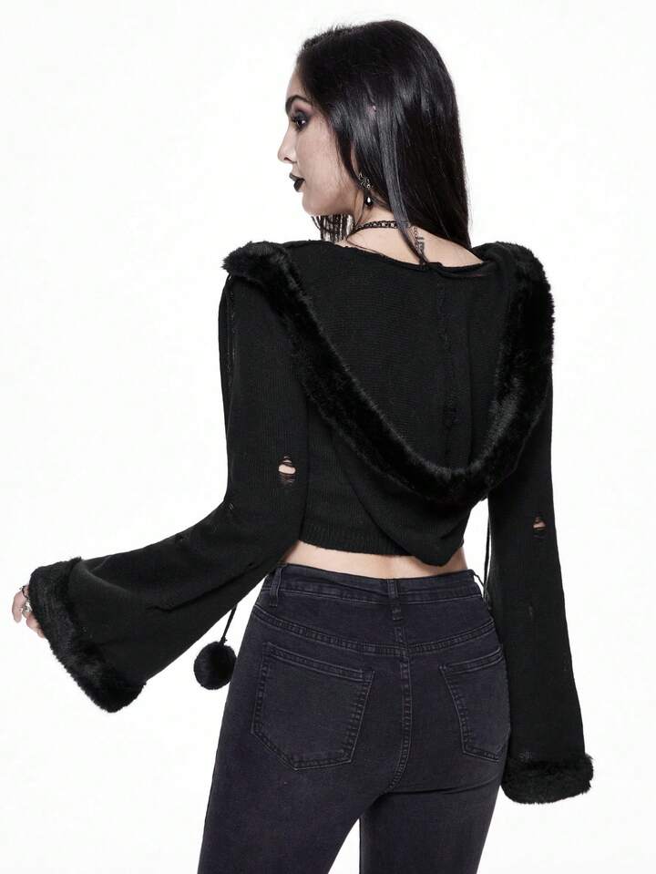 Cardigan léger à capuche style gothique foncé et délavé pour femmes
