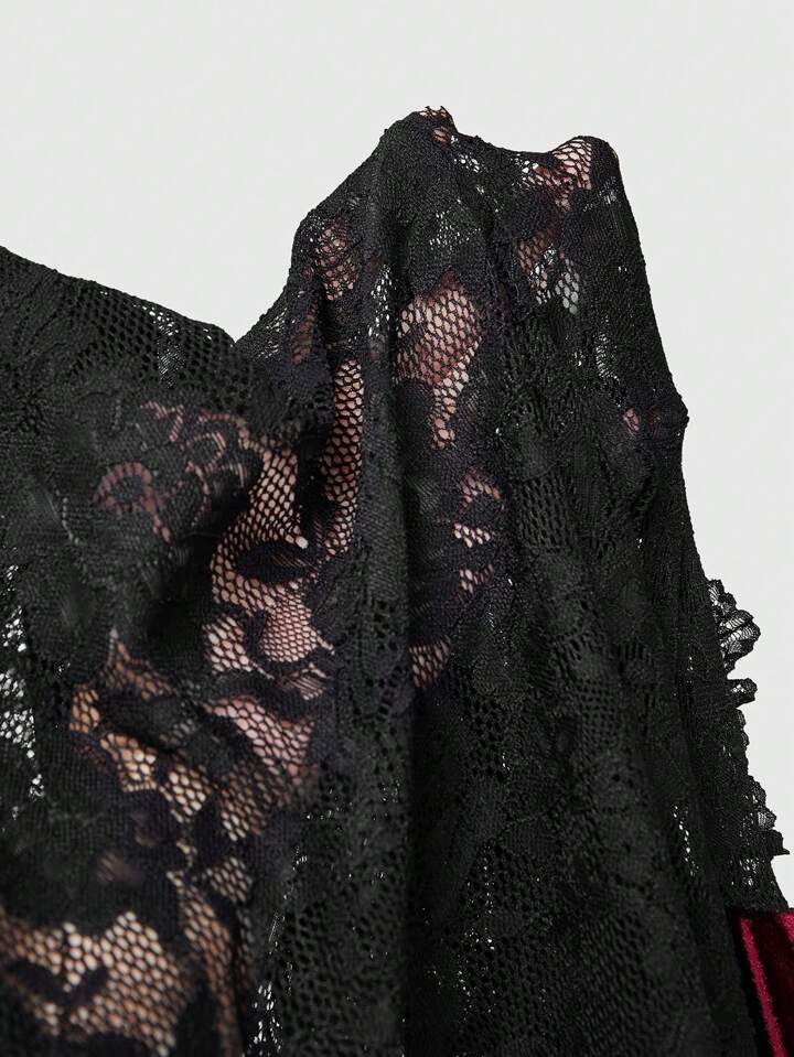 Robe en velours élégante gothique pour femmes avec patchwork en dentelle, épaules dénudées, manches évasées et style sirène, convenant pour le Nouvel An, la Saint-Valentin et les fêtes de Noël
