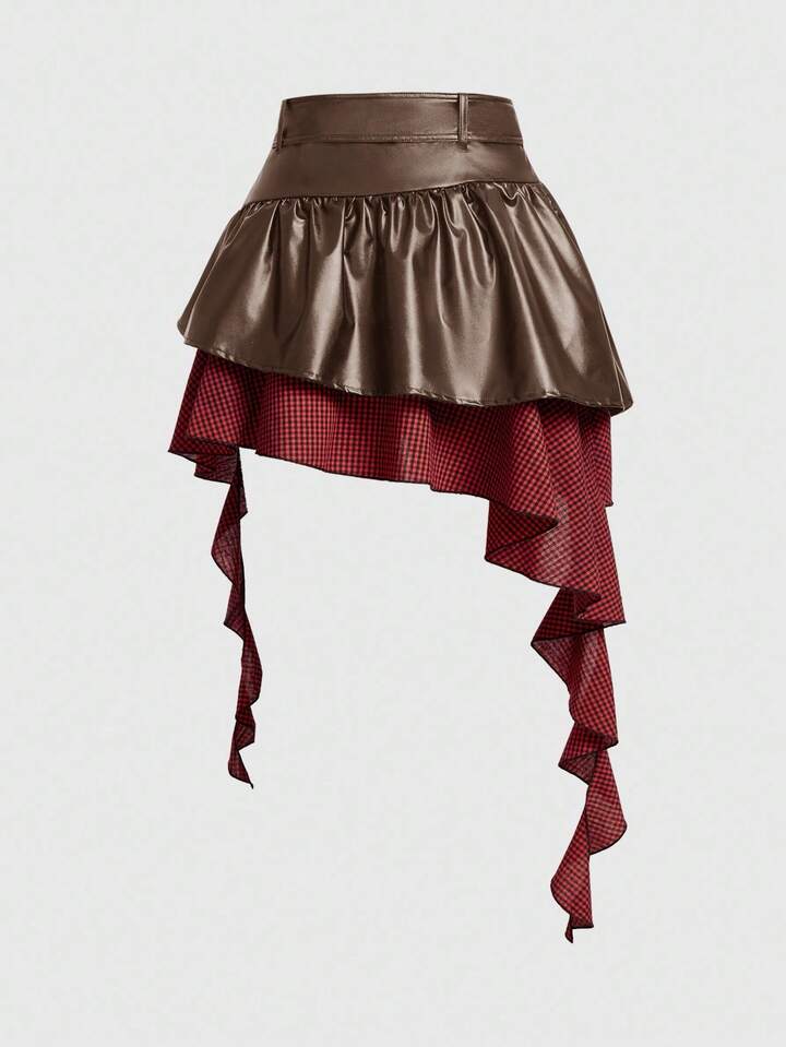 Jupe asymétrique en patchwork à carreaux pour femmes