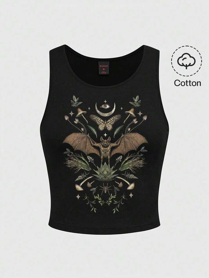 Débardeur graphique pour femmes avec motif gothique sombre et mystérieux de papillon noir et de champignon à l'œil