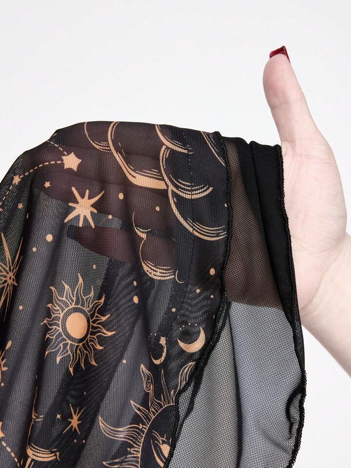 Jupe midi enveloppante à nouer avec motif étoile lune mystérieux rétro gothique en maille imprimé sur toute la surface, style plage