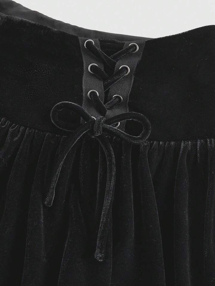 Jupe mini en velours à volants style punk gothique avec laçage, noire