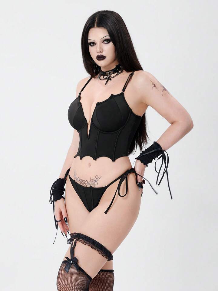 Ensemble bikini gothique pour femmes avec Top à bretelles sans manches à échancrure en V et culotte. Convient pour la plage, les fêtes, Halloween