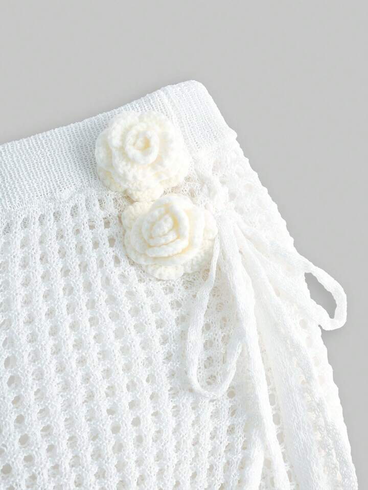 Jupe mini en tricot à lacets et motif floral avec lien sur le côté pour femme