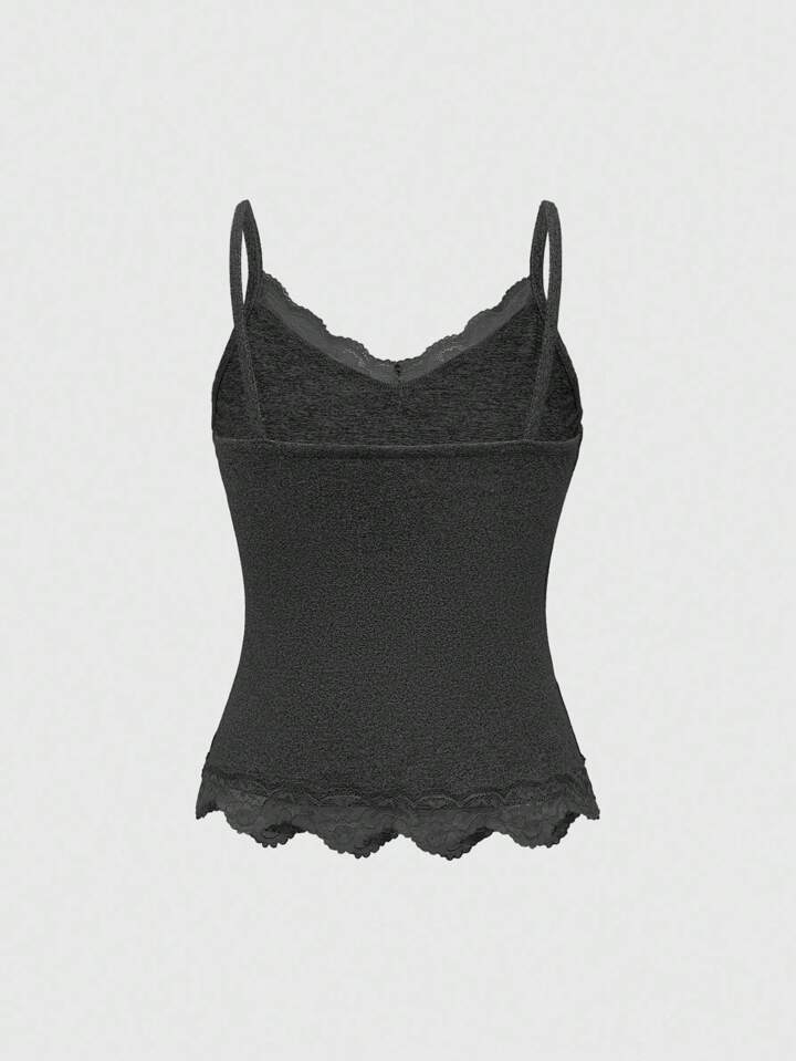 Débardeur femme couleur unie à dentelle contrastante avec décor nœud papillon
