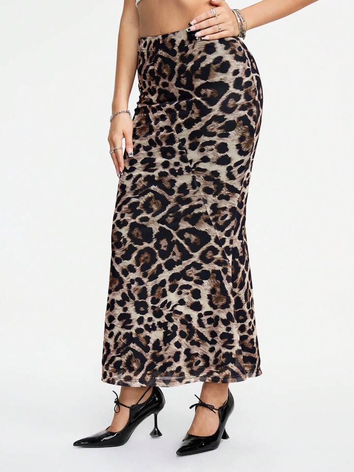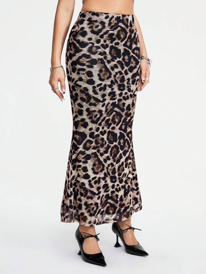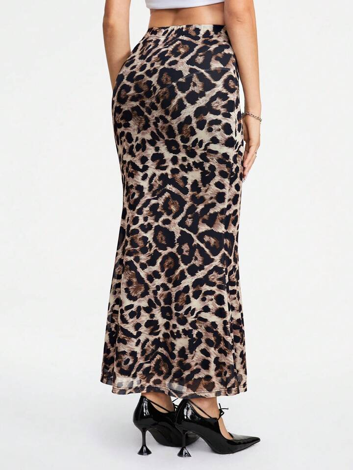 Jupe longue de queue de poisson à imprimé léopard pour les femmes, mode d'été