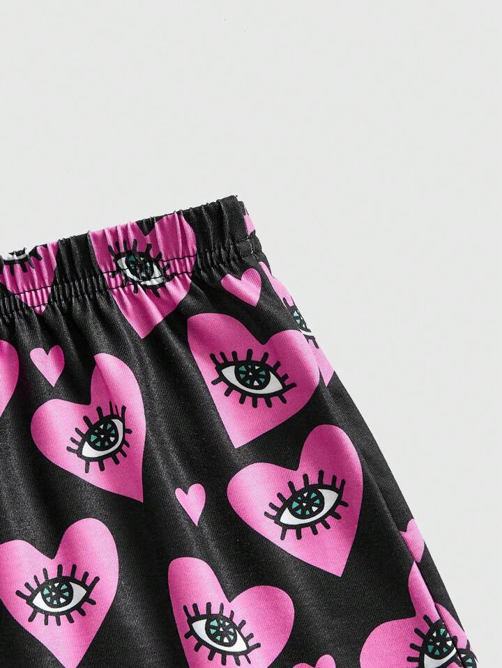 Ensemble Pyjama Débardeur Et Shorts Pour Femmes Avec Imprimé De cœurs Et D'yeux Numériques