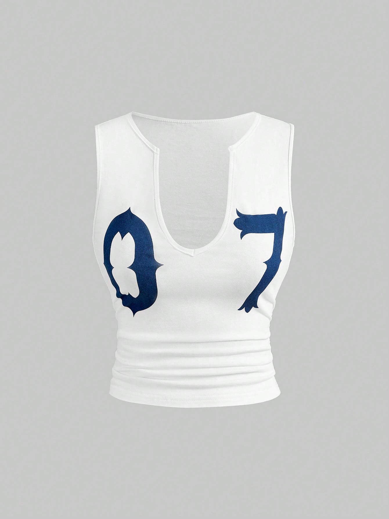 Débardeur femme à imprimé numérique, col V profond, polyvalent et sexy, style Y2K Baddie