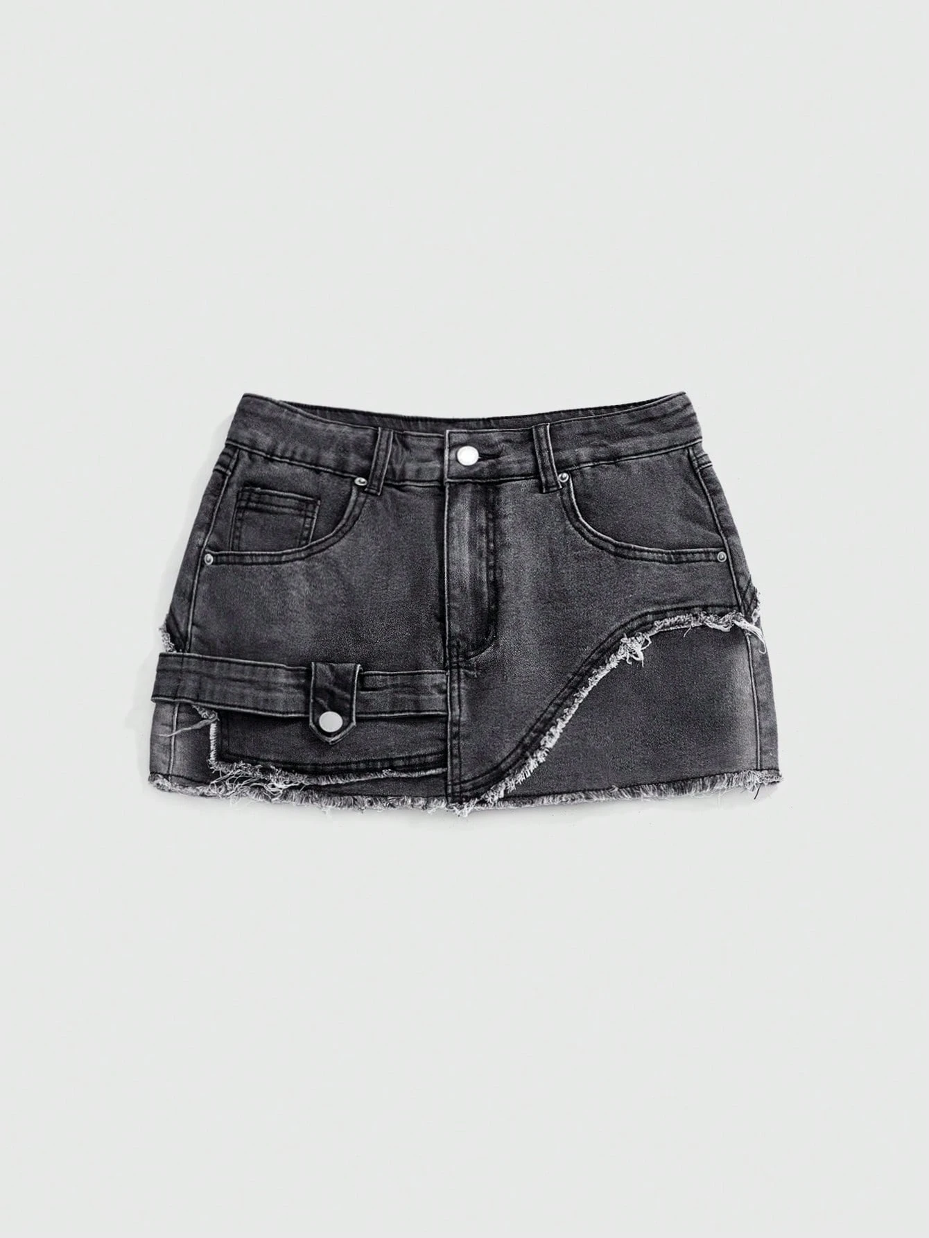 Y2K Jupe mini en jean déchirée asymétrique sexy pour femmes