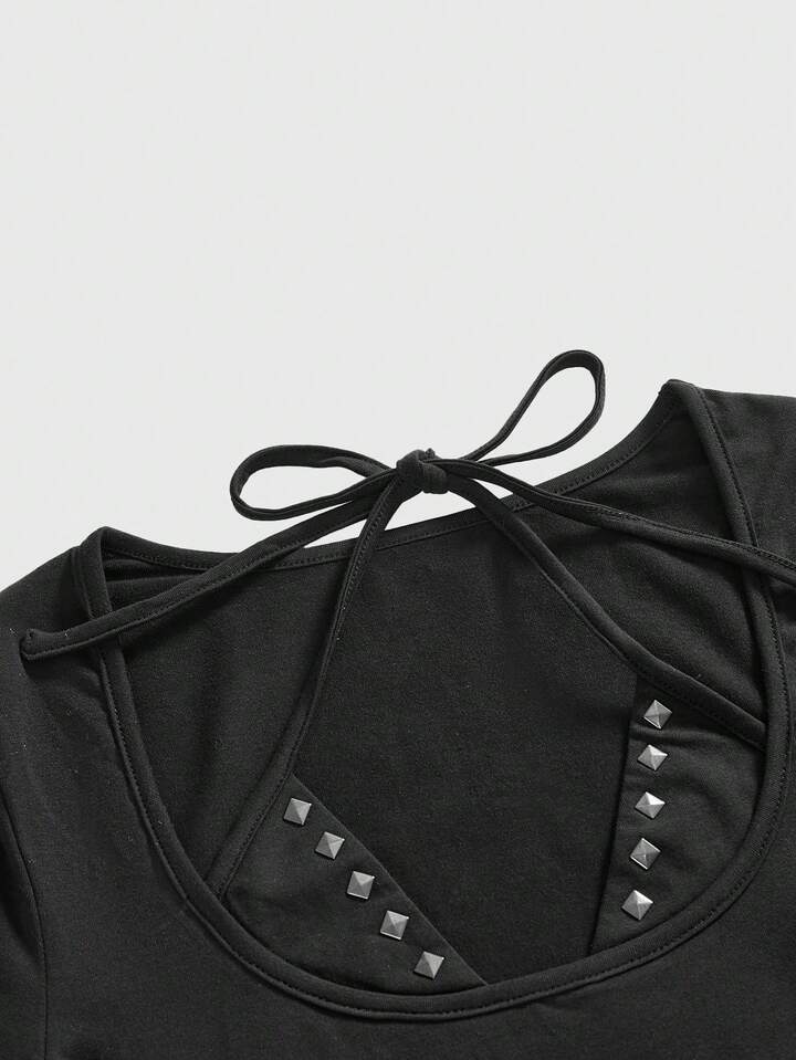T-shirt ajusté avec rivets style "Y2K Baddie" assorti avec mini-shorts à taille basse
