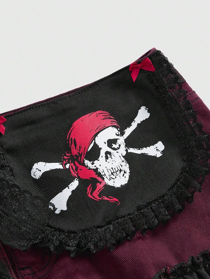 Goth Short en jean mini style pirate sombre avec imprimé crâne Y2K