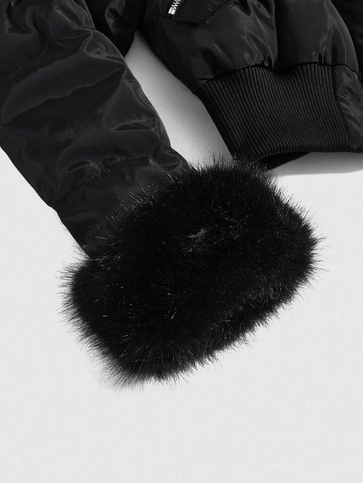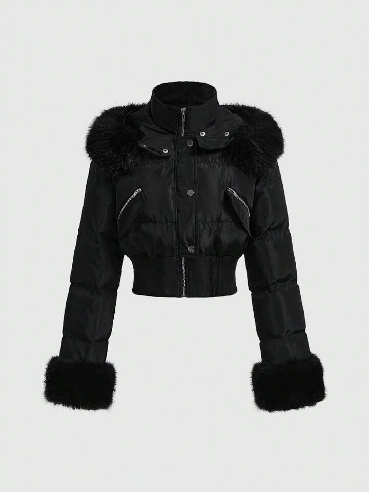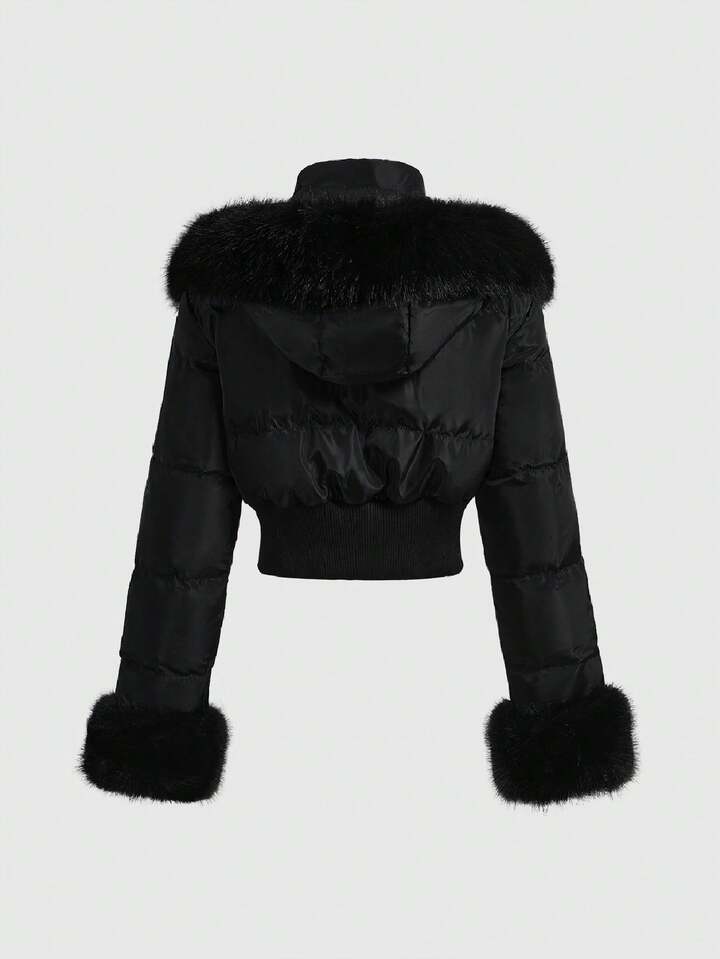 Manteau court matelassé pour femmes avec strass et fausse fourrure de style Y2K