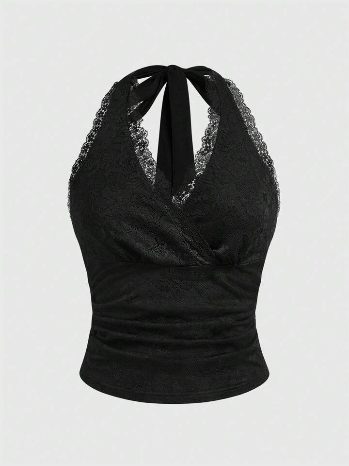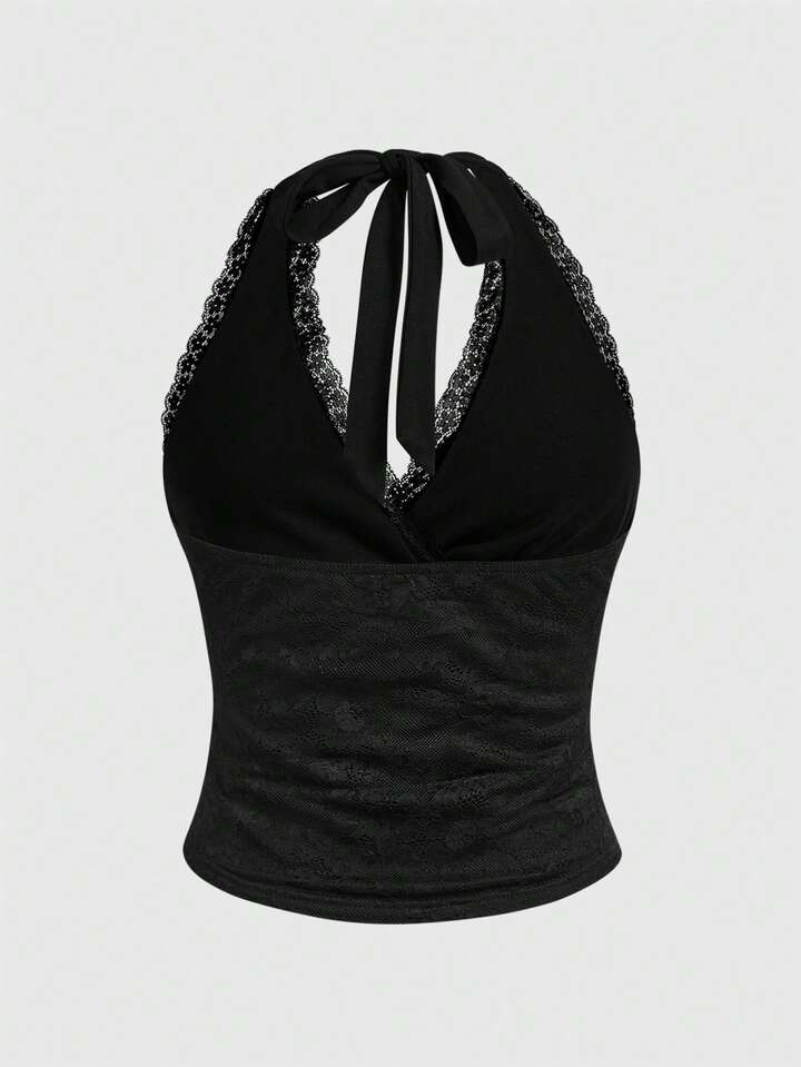 Débardeur moulant à encolure ras-du-cou en dentelle sexy Y2K pour femmes