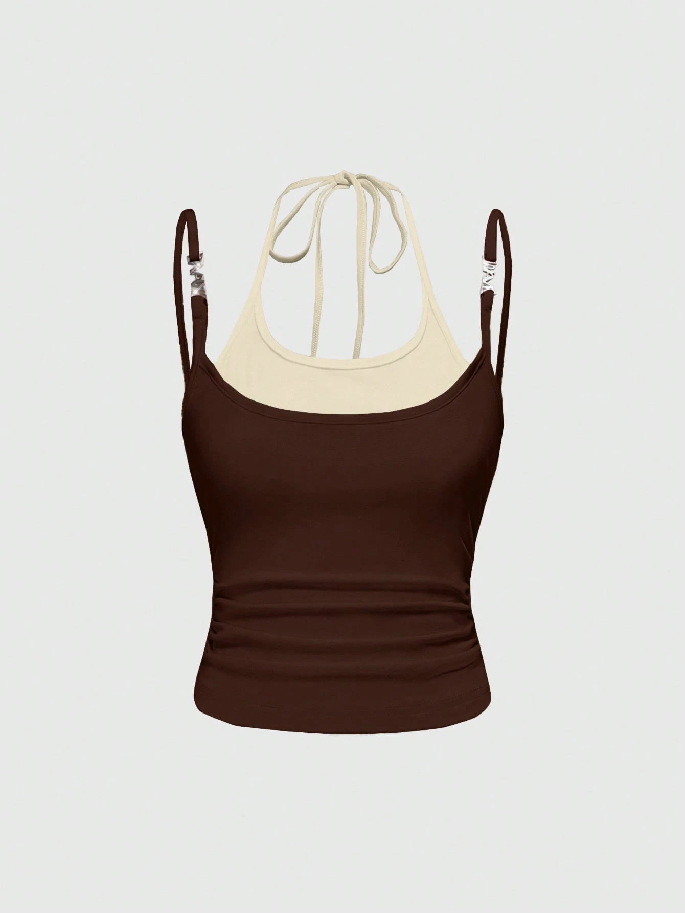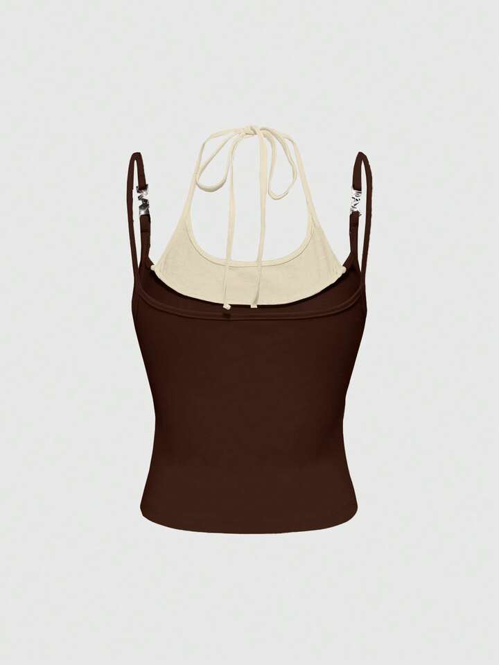 Débardeur à bretelles spaghetti 2 en 1 avec pendentif métallique sexy Y2K