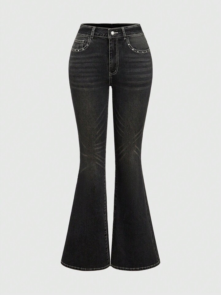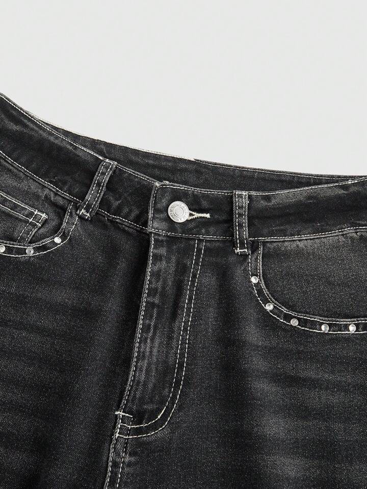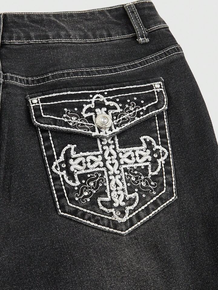 Jean skinny noir avec poche brodée, croix strass et style Y2K