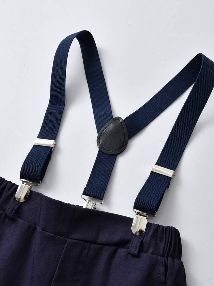Jeune Garçon À Nœud Papillon À Rayures Chemise & Pantalon À Bretelles