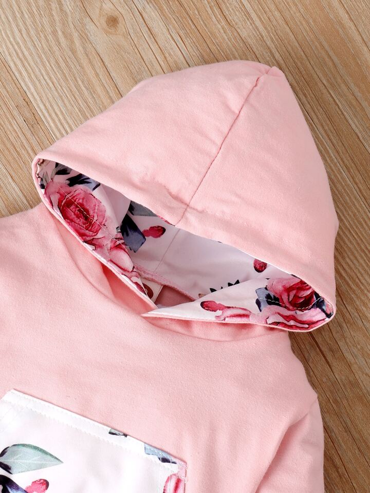Jeune Fille Sweat À Capuche Avec Imprimé Floral Avec Pantalon Et Bandeau