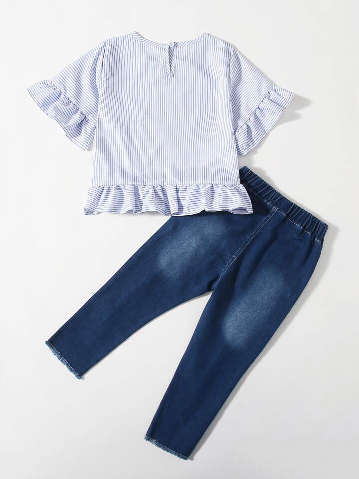 Jeune Fille À Rayures Blouse Avec Jean Déchiré