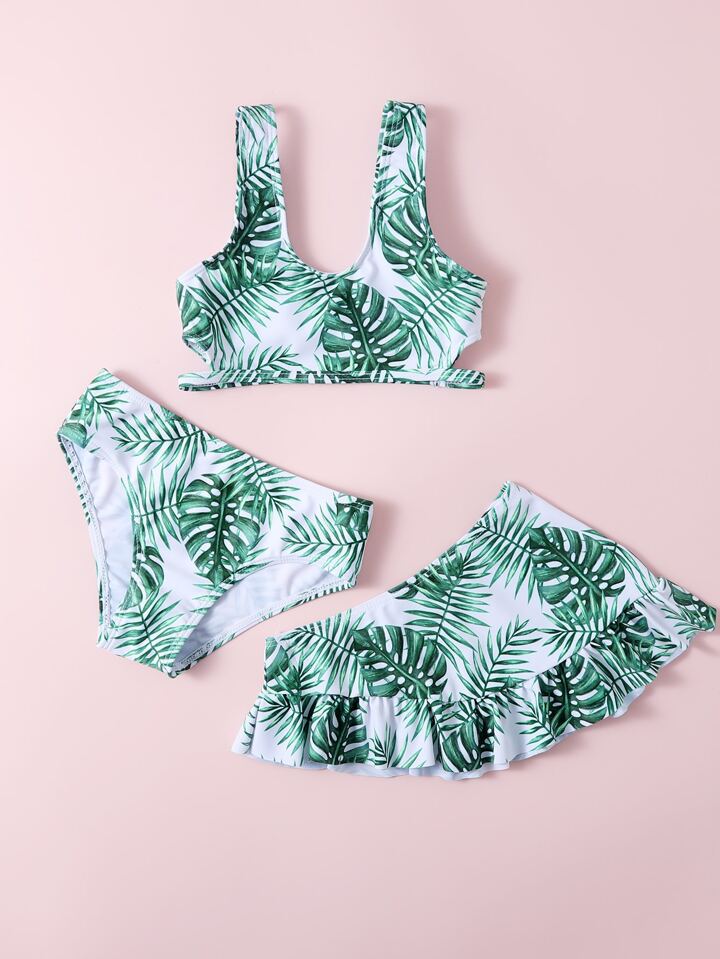 Ensemble de bikini à volants à imprimé tropical pour jeune fille, plage d\'été