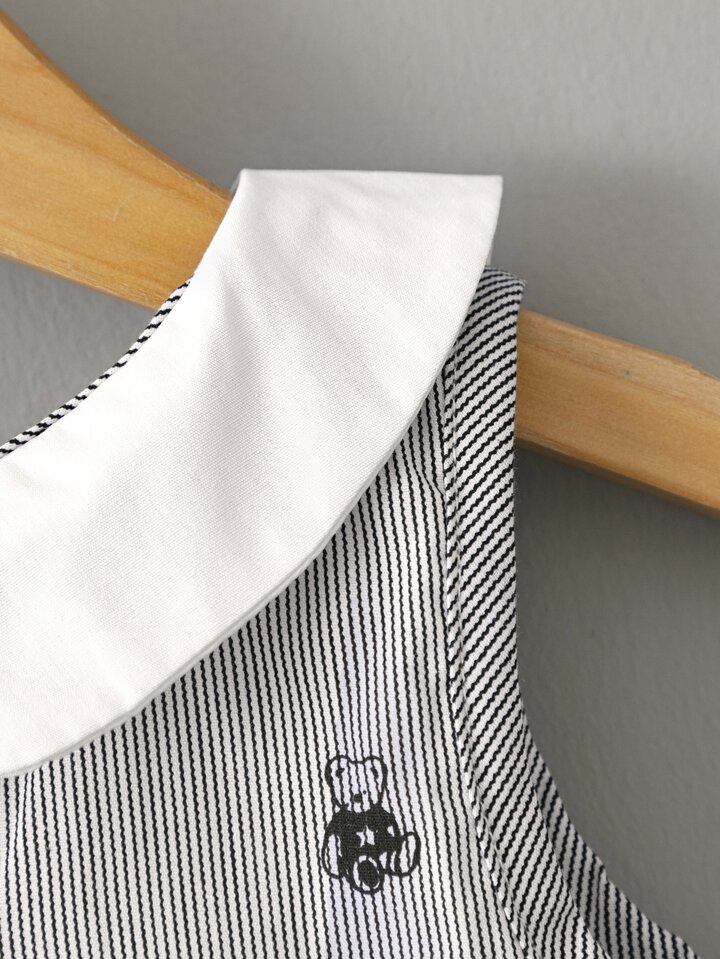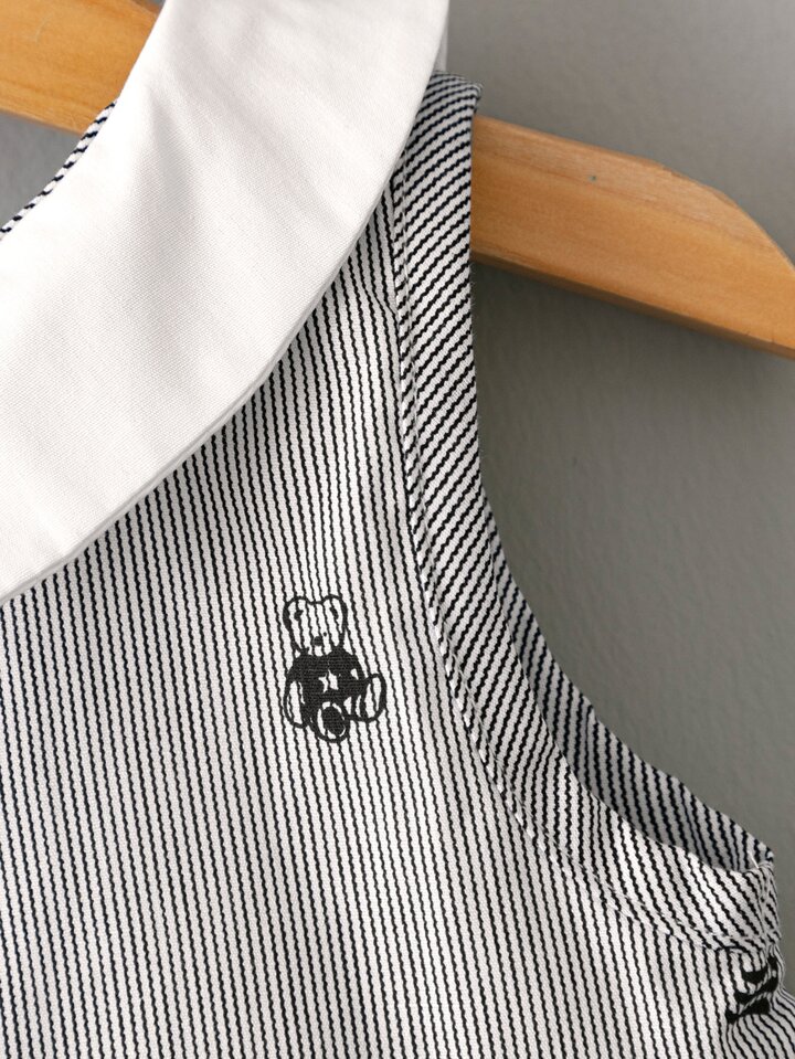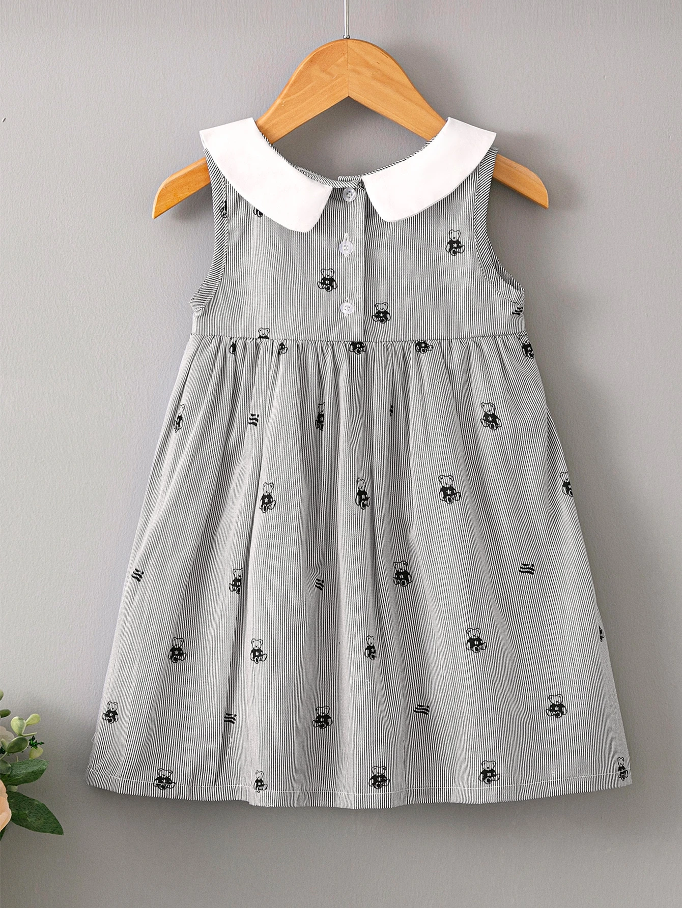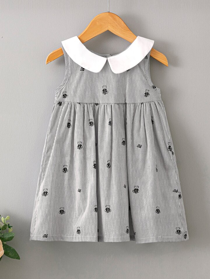 Robe à col claudine pour jeunes filles, imprimé ours en peluche et rayures