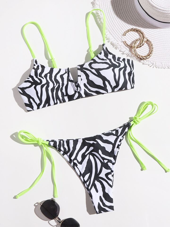 Ensemble bikini à liens latéraux à rayures zèbre