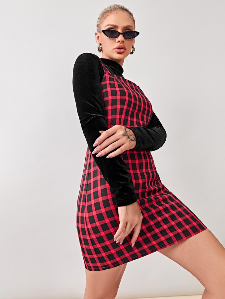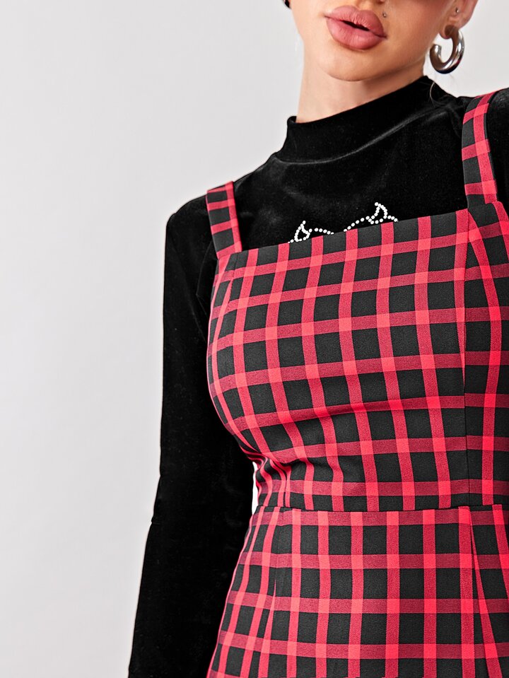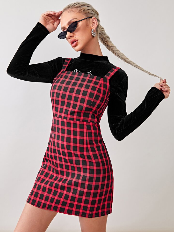 Robe chasuble à carreaux avec zip