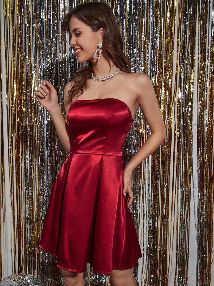 Robe bustier zippée à plis en satin