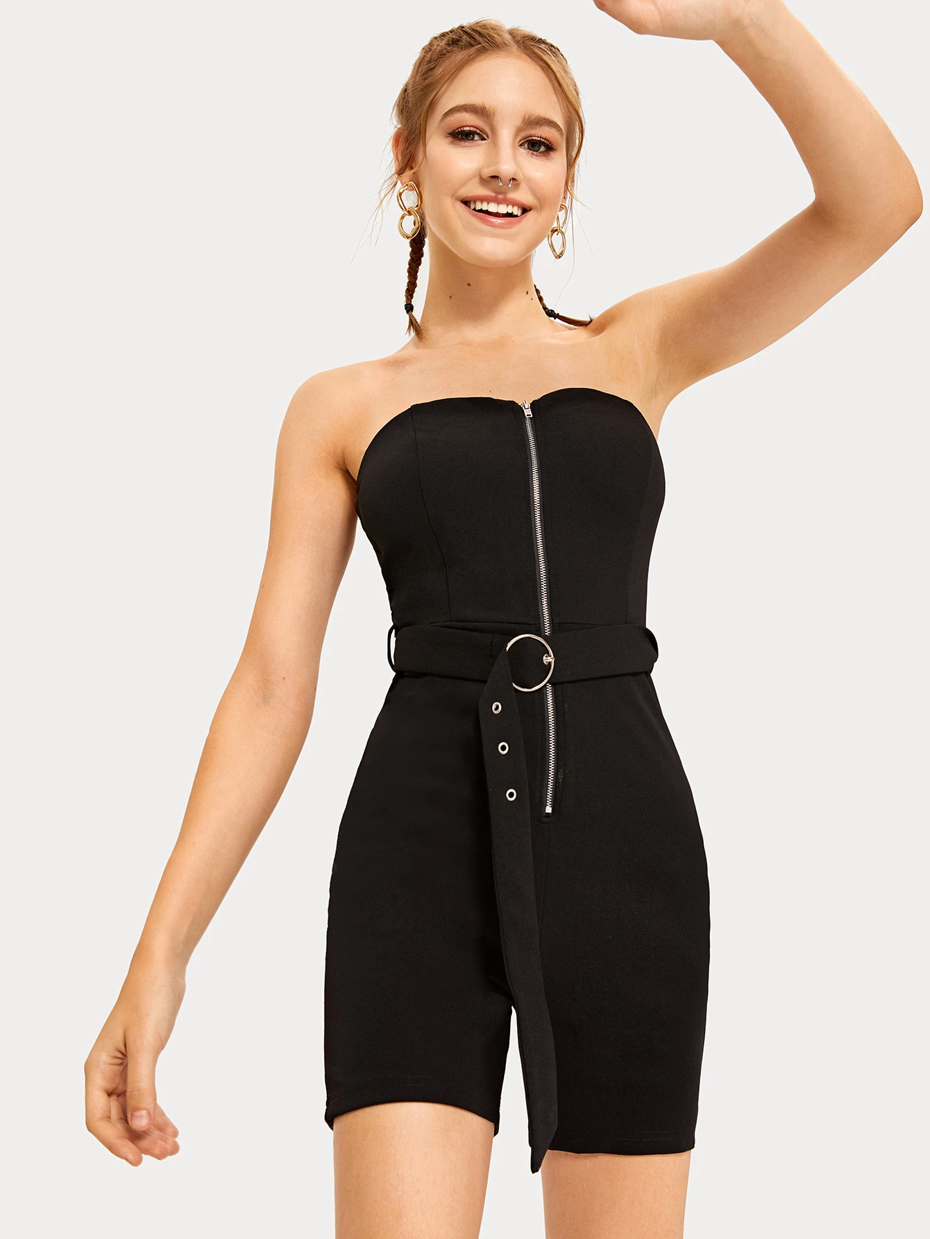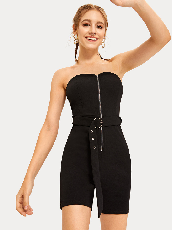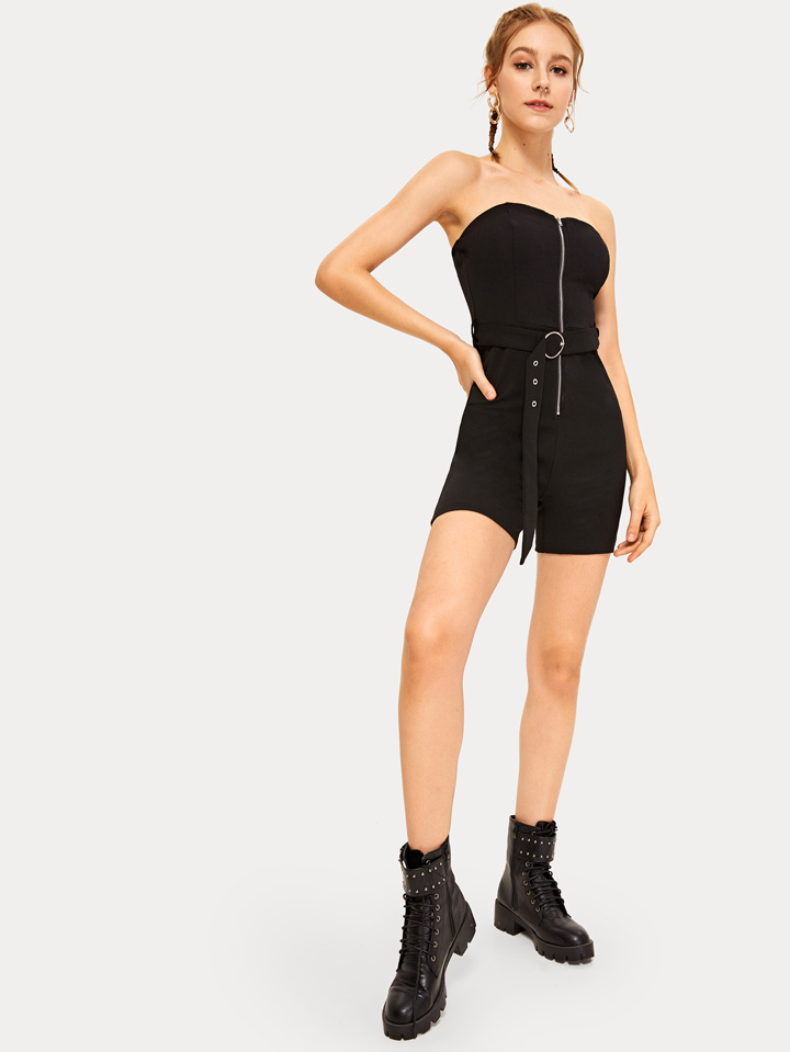Combishort bustier moulant zippé avec ceinture