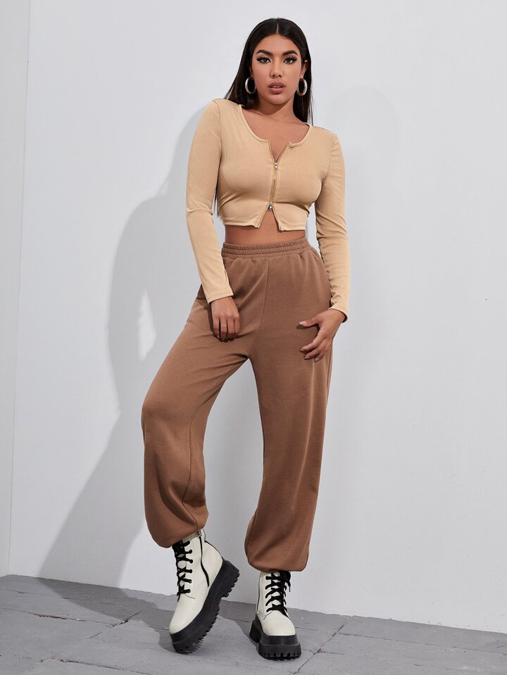 Top court côtelé zippé