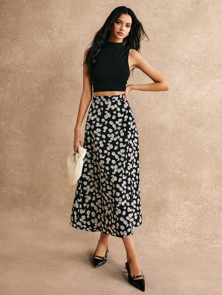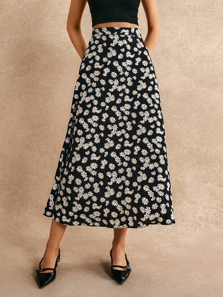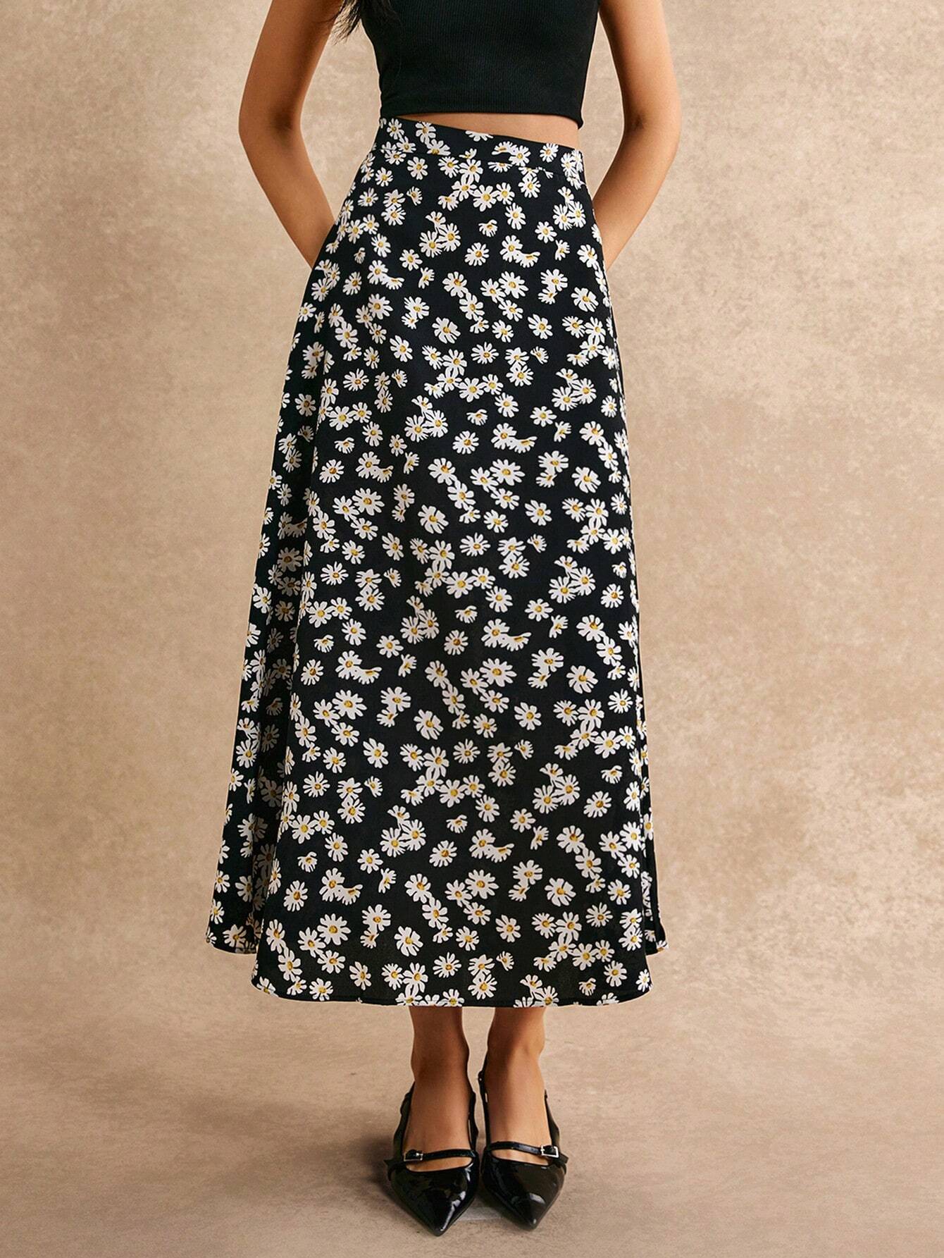 Jupe imprimé marguerite avec détail de fermeture éclair