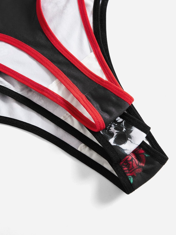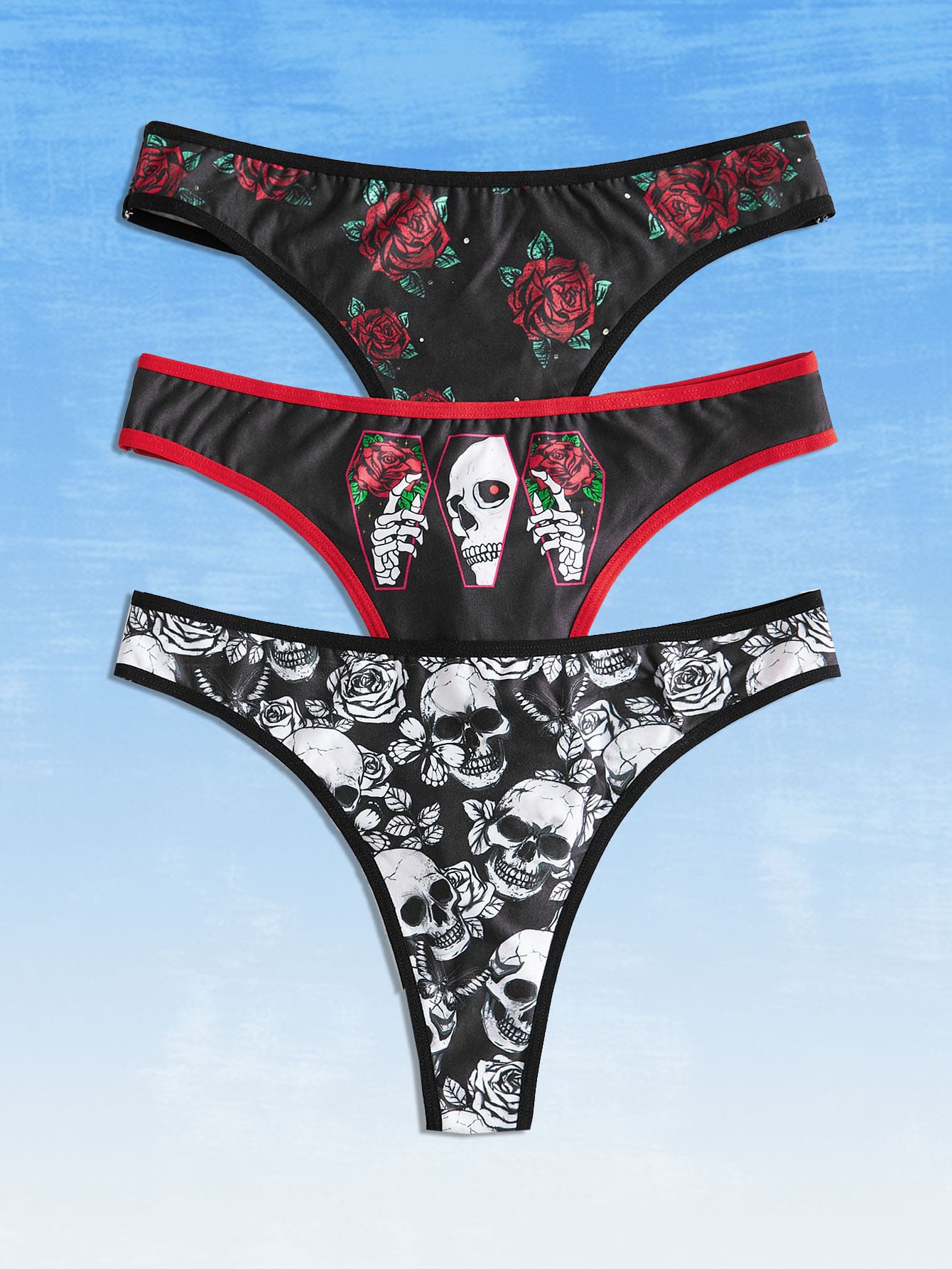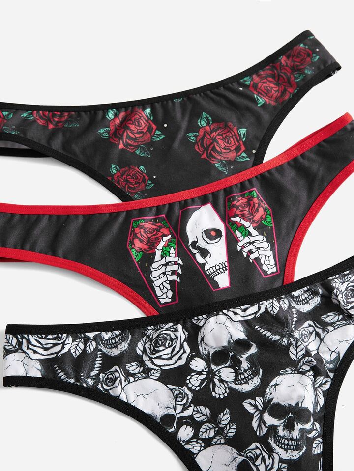 lockdsg 3 pièces Set de culottes à imprimé floral et squelette