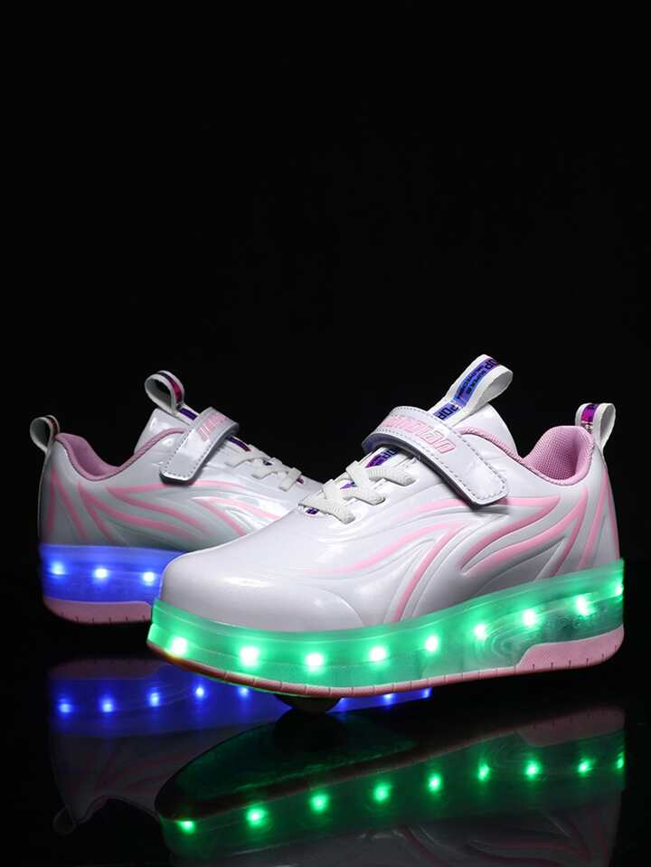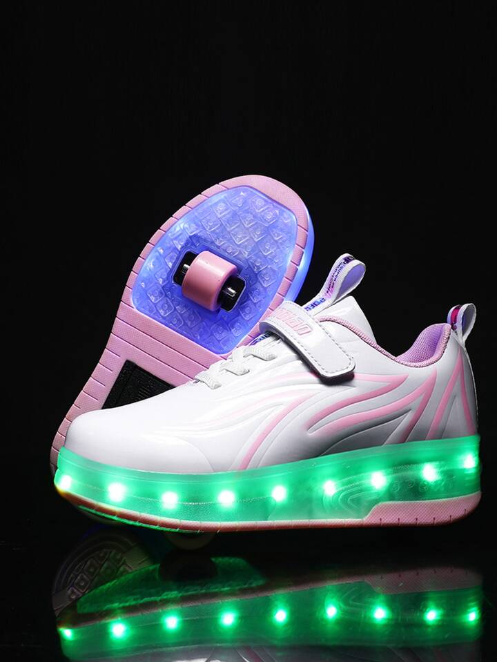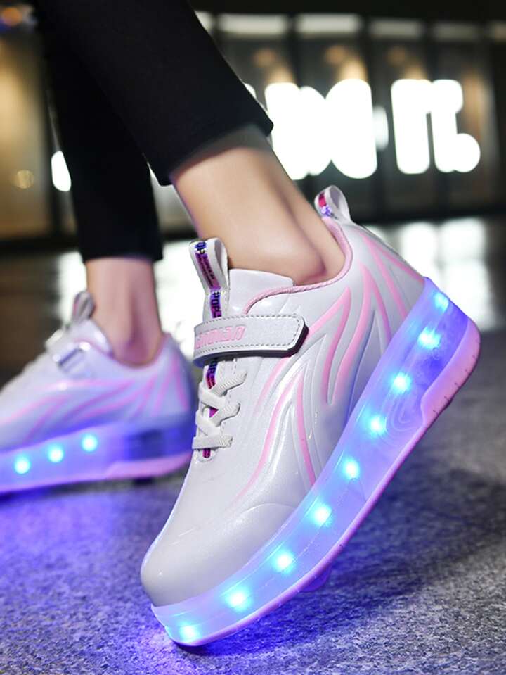 1 Paio di Scarpe da Pattinaggio per Ragazze con Rotelle Staccabili Ricaricabili USB, Colore Bianco