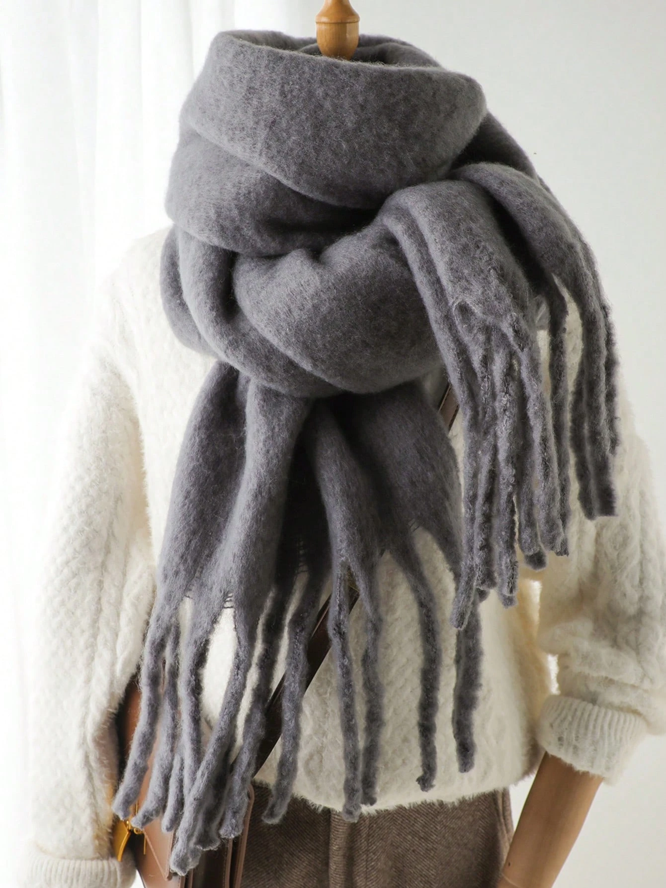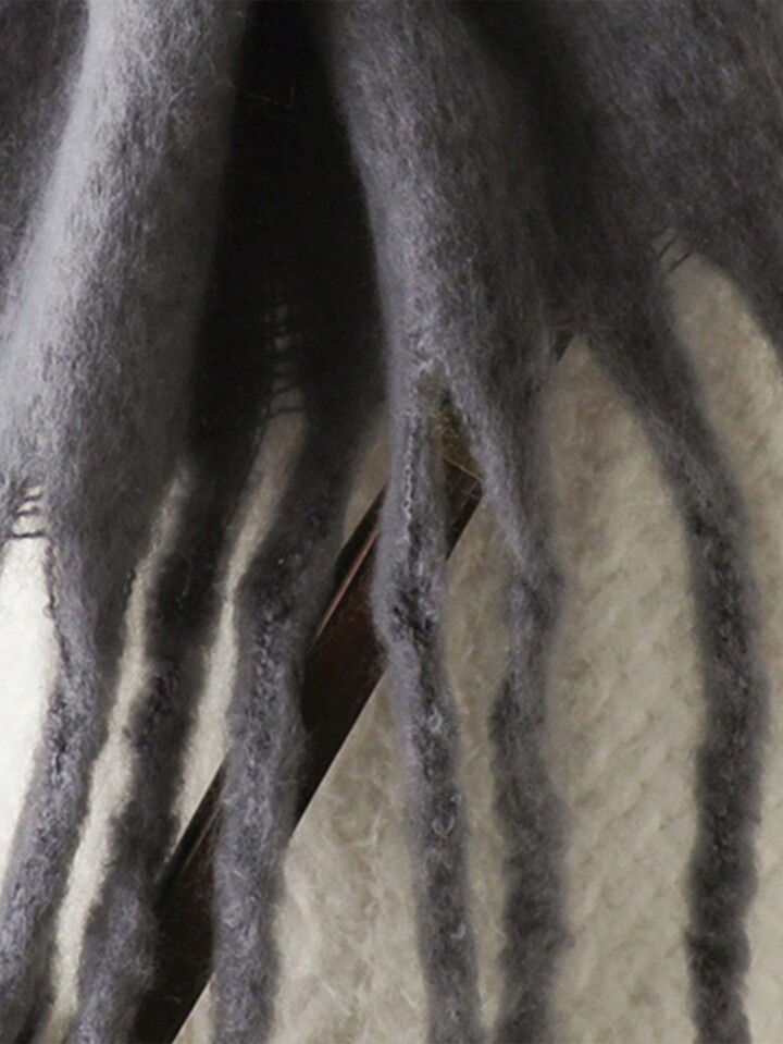 1 pezzo sciarpa invernale da donna in imitation di cashmere nero, scialle e stola spessa e calda, moda da donna con nappine, sciarpe pelose da indossare all'aperto