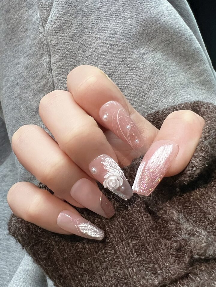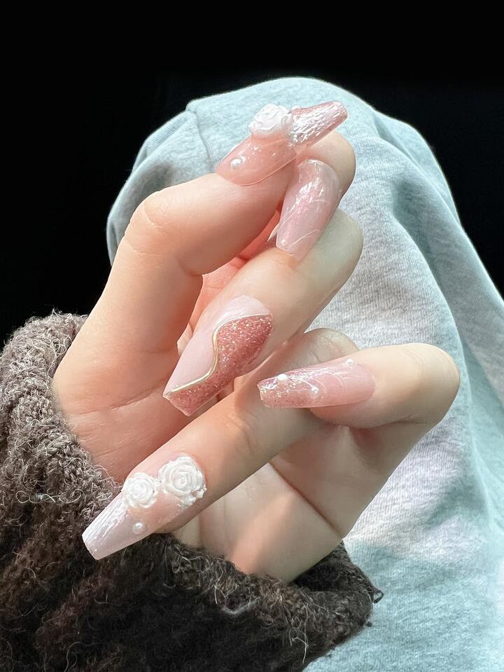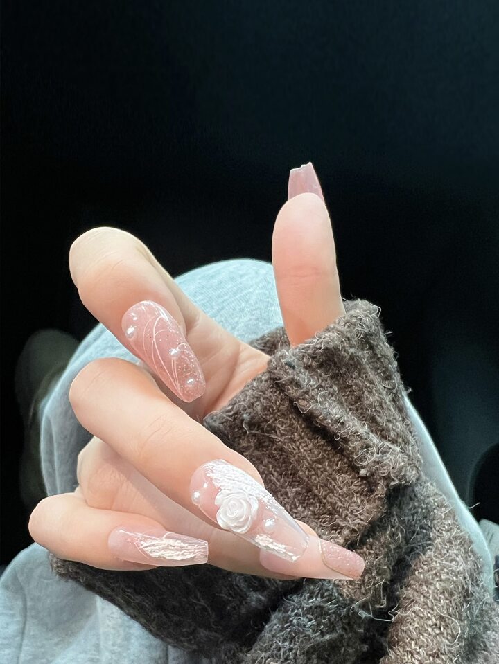 10 pezzi lungo bara 3D con decorazione floreale Unghie finte & 1 foglio nastro