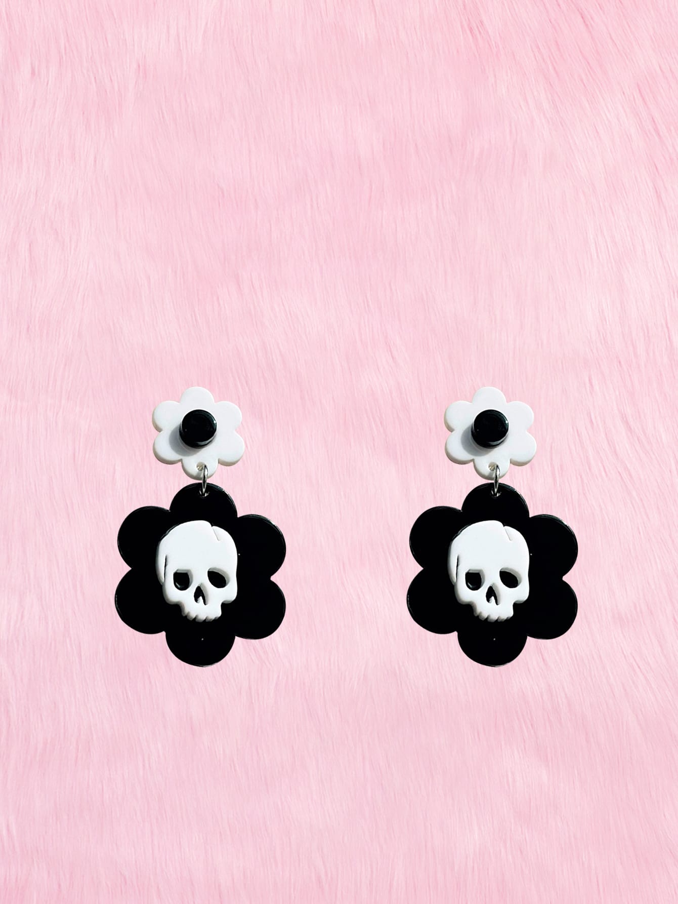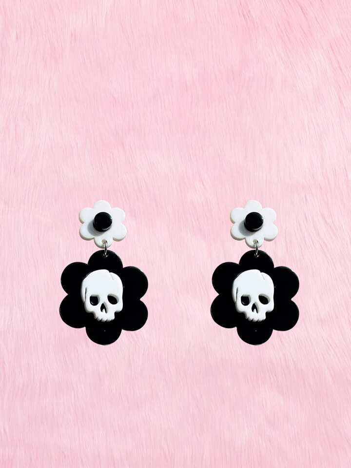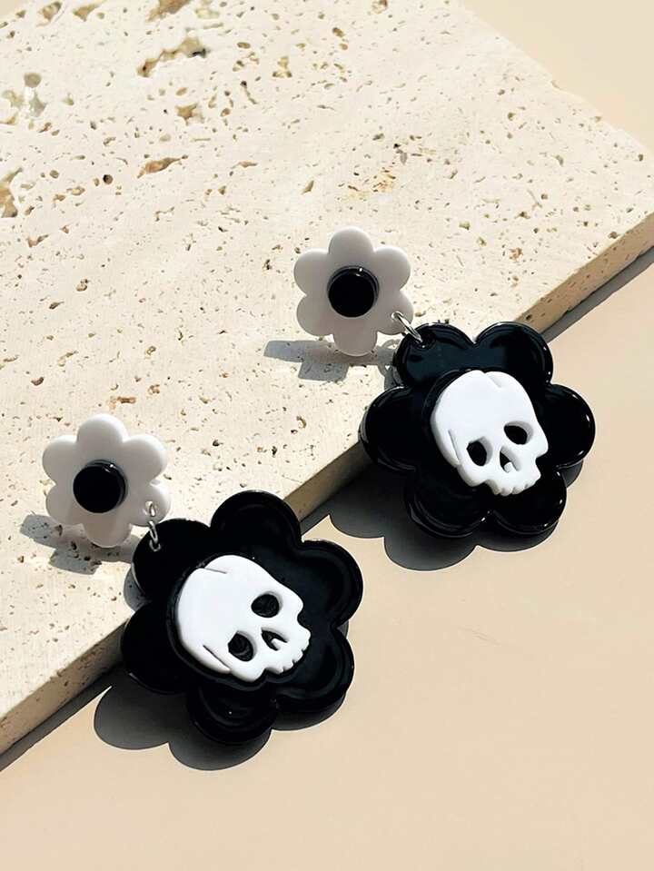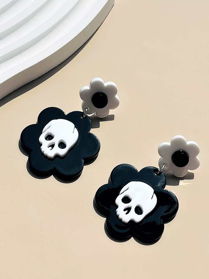 Donna 1 paio Orecchini a bottone creativo teschio & con design floreale per per decorazione quotidiana