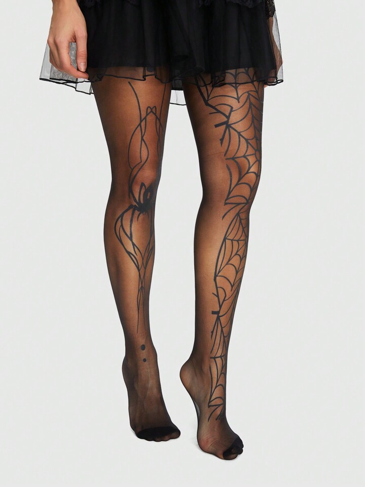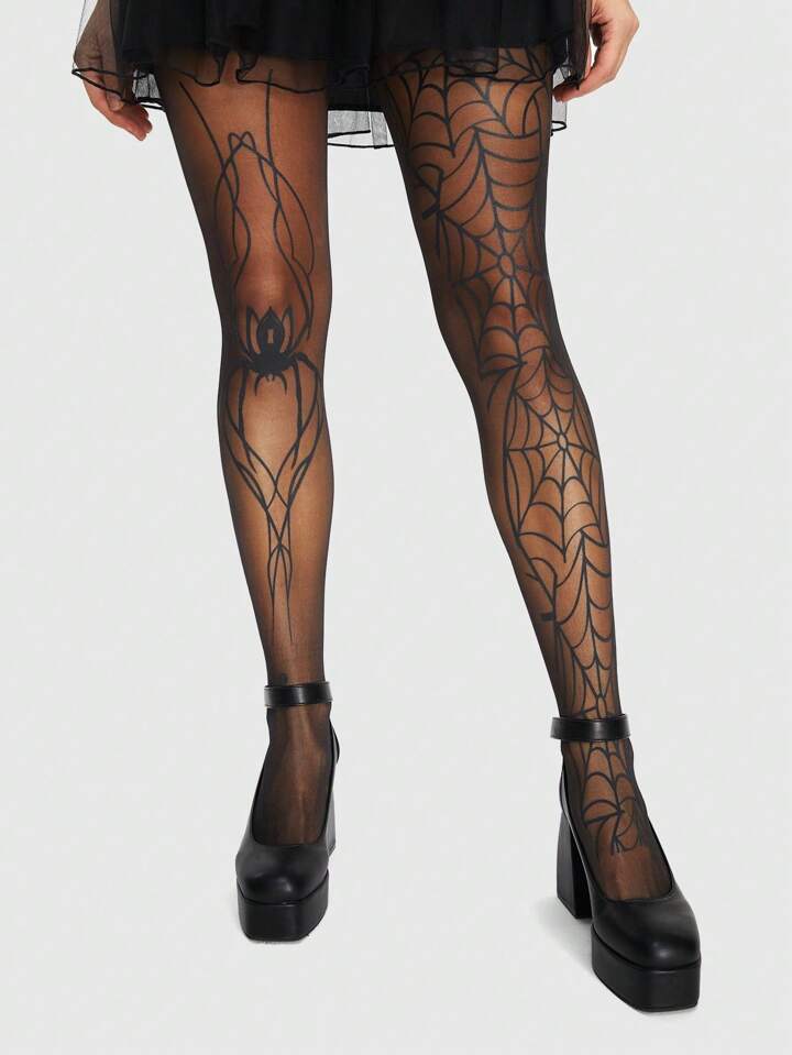 Goth 1 Paio Collant Neri Stampati Ragni Gotici Da Donna Per Tutte Le Stagioni